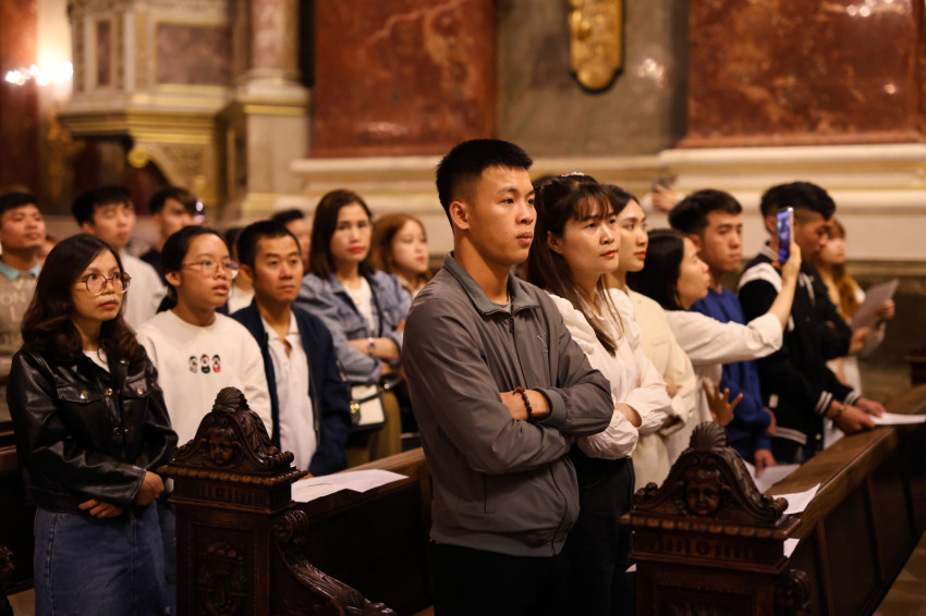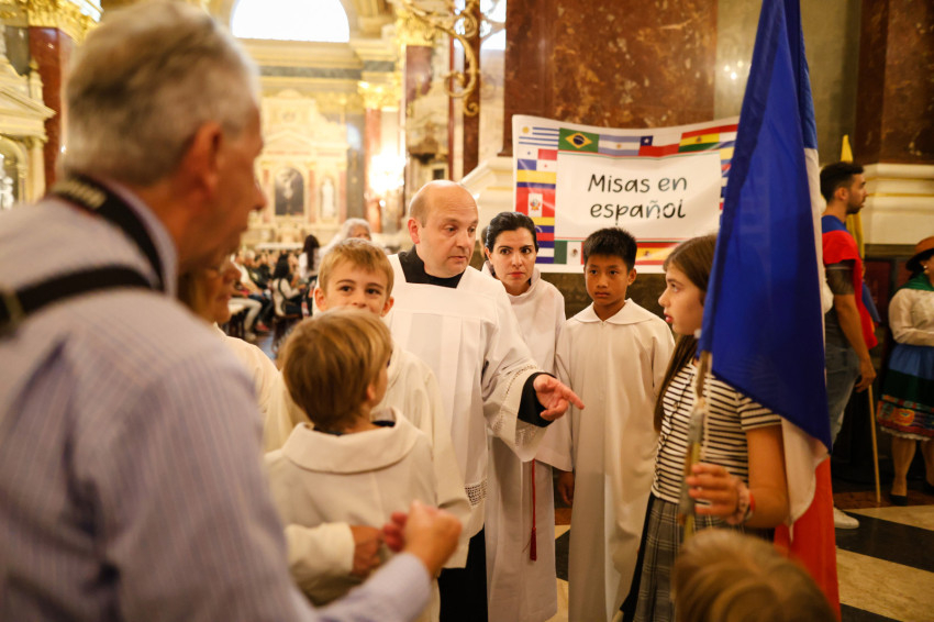 Papp Tamás atya kérdésünkre elmondta: a szentmisére kilenc nyelven készítettek lapokat. Minden nyelvi közösséggel foglalkozik egy lelkipásztor. A spanyol közösségben nagyon sokan vannak, hozzájuk tartoznak a spanyol ajkú latin-amerikaiak is. A német közösség a Fő utcában, a francia Remetekertvárosban, az olasz szintén a Fő utcában, de a kapucinusoknál, a lengyel közösség Kőbányán az Ó utcában, a horvát a Szent Mihály-templomban jár össze. A vietnámi nagy közösséget a szaléziak látják el, a nyolcadik kerületi Tömő utcában kaptak templomot a főpásztortól ugyanúgy, mint nemrég a kínaiak Kőbánya-MÁV telepen, a koreaiak pedig az Etele térnél. Az arab katolikusok Szíriából jöttek és a francia közösséghez tartoznak.