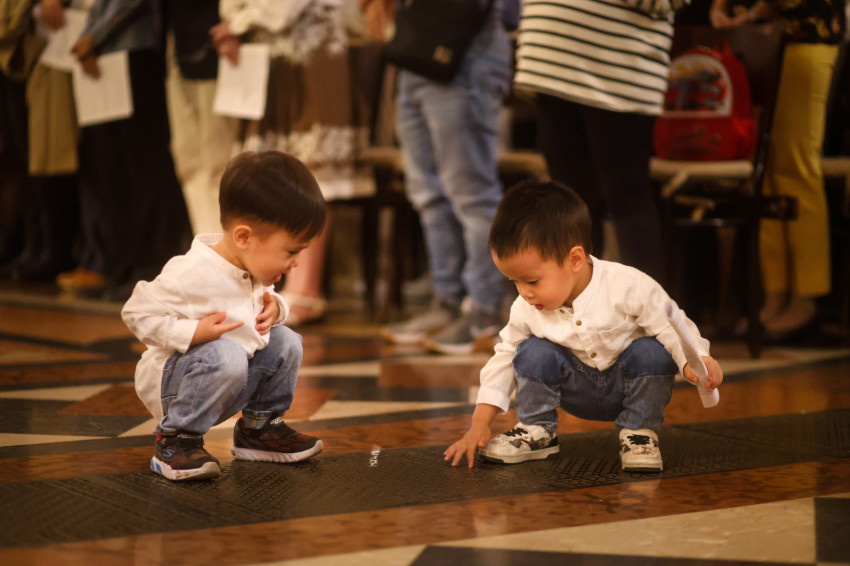 A bazilikát megtöltő külföldiek számára különböző idegen nyelveken is kinyomtatták a liturgia szövegét és a felolvasott szentírási részeket.