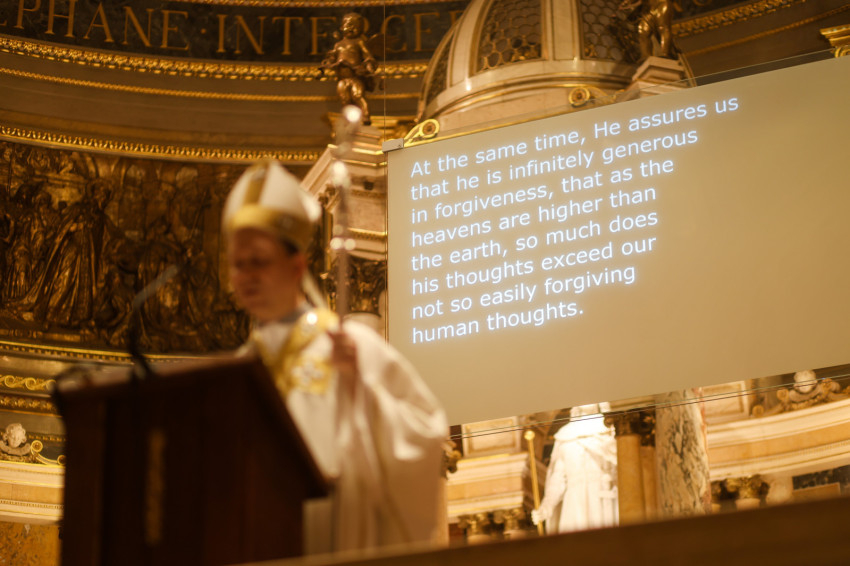 Mohos Gábor prédikációját a szentmisében elhangzott szentírási részek magyarázatával folytatta. Izajás által arra hív Isten, hogy keressük őt, ne akarjuk nélküle élni az életünket. Őt megismerve rádöbbenünk, hogy bűnösök vagyunk, szükségünk van a megbocsátó szeretetére. Ugyanakkor biztat minket, hogy végtelenül bőkezű a megbocsátásban:
