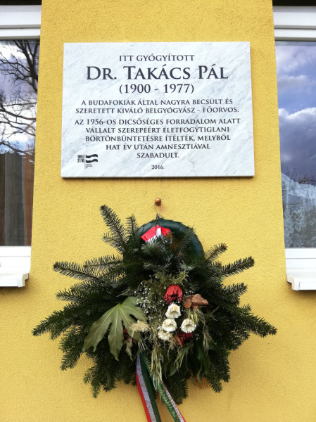 Mindenképpen meg kell emlékeznem Dr. Takács Pálról is, aki belgyógyász főorvosként működött Budafokon. Édesanyám sokszor mesélt róla, mert születésemkor egy nagyobb daganatot távolított el a nyakamról, merész döntést hozva. Nemrég emléktáblát állítottak neki, a város elismert, tekintélyes polgára volt, a szegényeket ingyen kezelte a nehéz időkben. Az 1956-os forradalomban vállalt szerepéért életfogytiglani börtönre ítélték, hat év után szabadult amnesztiával.