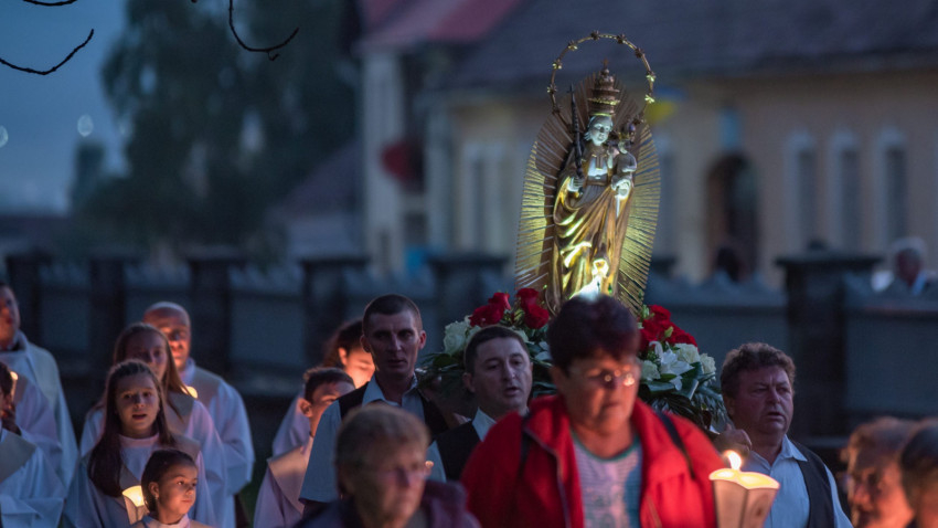 A szentmise után a gyimesközéploki hívek vezetésével az örvendetes rózsafüzért imádkozták a zarándokok, majd a kegytemplom előtti téren gyertyás körmenetben vitték a Szűzanya kegyszobrának másolatát. Az elsőszombati Mária-köszöntőt az erdélyi Mária Rádió és a kegyhely YouTube-csatornája élőben közvetítette.