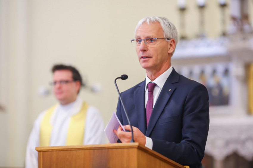 Soltész Miklós, a Miniszterelnökség egyházi és nemzetiségi kapcsolatokért felelős államtitkára köszöntőjében különleges kisugárzású helynek nevezi Ferencvárost és benne a Bakáts téri templomot, méltatva néhány, a közösség számára meghatározó személyiség szolgálatát. Rámutat: a templomban erősödött meg a kommunizmus tiltása ellenére a földalatti Regnum Marianum mozgalom. Köszönetet mond Erdő Péter bíborosnak amiért annyi sok templomfelújításban tudtak együttműködni.