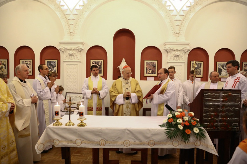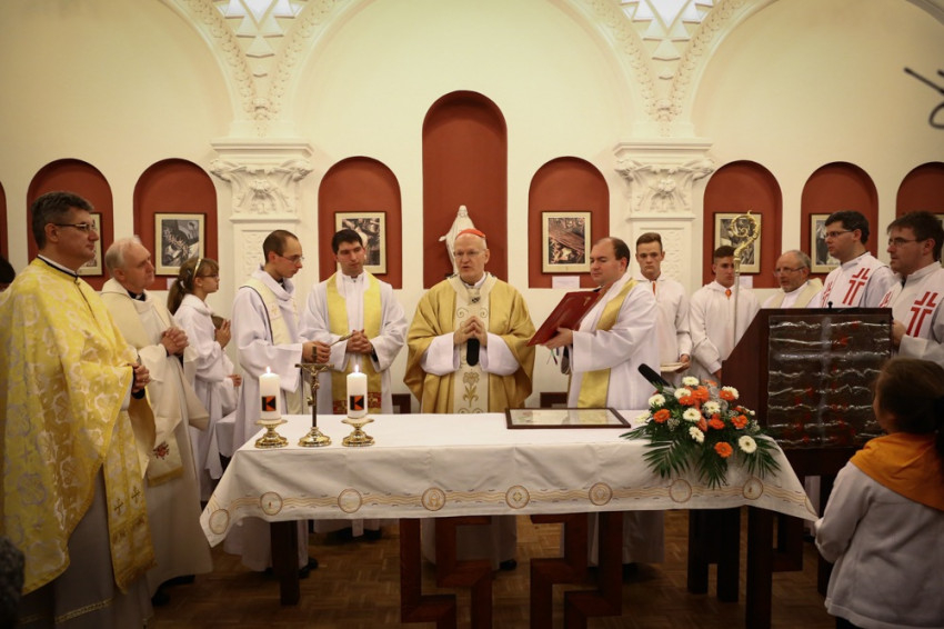 A szentmise végén került sor a felújított iskola megáldására. Erdő Péter egy, az ünnep emlékét hordozó írásos képet adott át Debreczeni Zsolt igazgatónak, majd Isten áldását kérte az iskola tanáraira és diákjaira. A bíboros továbbá örömét fejezte ki, hogy a katolikus iskola, amely közösséget teremt és amely a szeretetre kötelez, nemcsak saját tagjai felé közvetíti ezt a szeretetet, hanem kifelé is sugározza. Így külön örömmel köszöntötte a szepsi testvériskola delegációját, akik eljöttek a budapesti Kolping-iskola ünnepére.