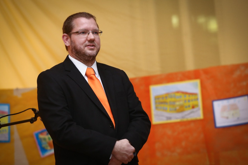 A szentmise után rövid köszöntő műsor következett az iskola feldíszített tornatermében. Debreczeni Zsolt megköszönte mindazok, különösen a szülők és családok munkáját, akik részt vettek az épület felújításában.
