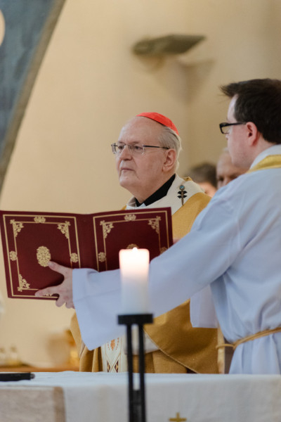 A bíboros kiemelte: „Jézus Krisztus tanítása fennmaradt a Szentlélek sugalmazása mellett, az Egyház közössége pedig a könyvekben felismerte, hogy valóban ez volt Krisztus hiteles története és tanítása. Ez a zsinórmérték, ezt kell később is a közösségi istentiszteleteken felolvasni és tanulmányozni. Kialakult az Újszövetségi Szentírás, amit az Egyház őriz és kísér a hagyomány tanúságtételével. Ugyanakkor újra és újra tanúságot kell tenni arról, hogy hiszünk Jézusban, és szeretjük őt. Már az első évszázadokban elkezdődött a vértanúk tanúságtétele is, ők is kísérték és kísérik mindmáig az Egyház történetét. Ezt itt Boldog Meszlényi Zoltán templomában nem kell hangsúlyozni, hiszen az ő élettörténete is egy hozzánk közel álló vértanúság volt.”