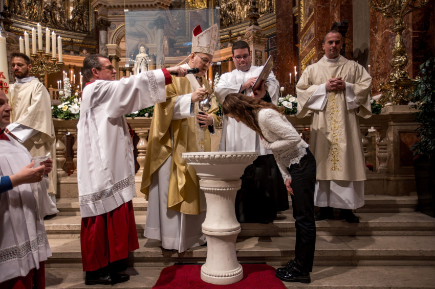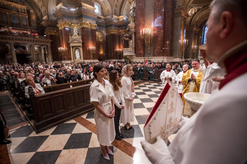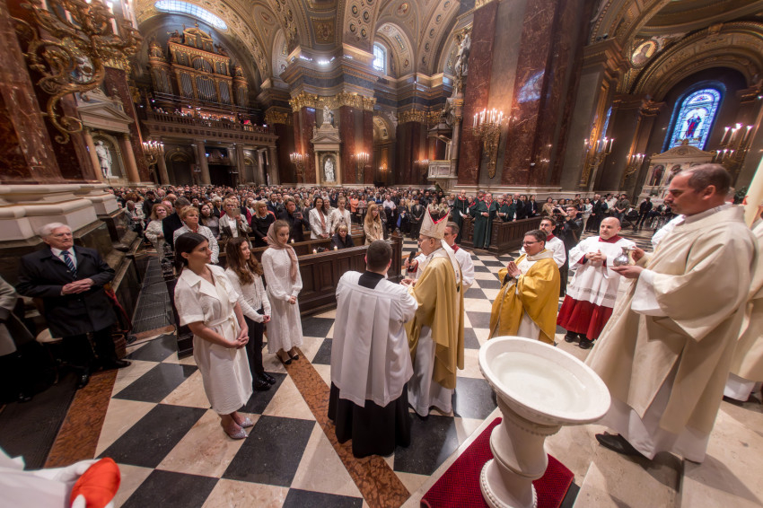A szentbeszédet követően Erdő Péter megáldotta a keresztvizet, megkeresztelt három felnőtt nőt, majd kiszolgáltatta nekik a bérmálás szentségét, ahogy az már az ősegyházban is gyakorlat volt. A jelenlévő hívek pedig megújították keresztségi fogadalmaikat.