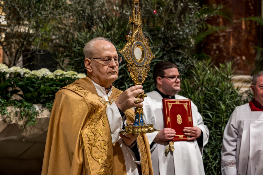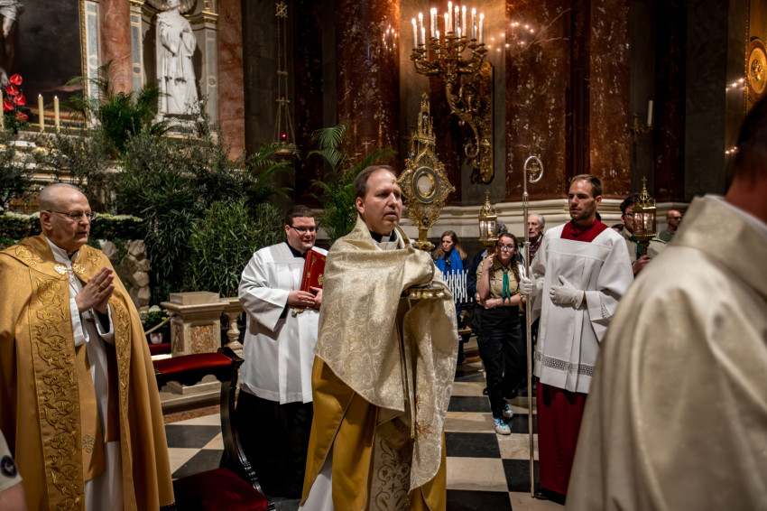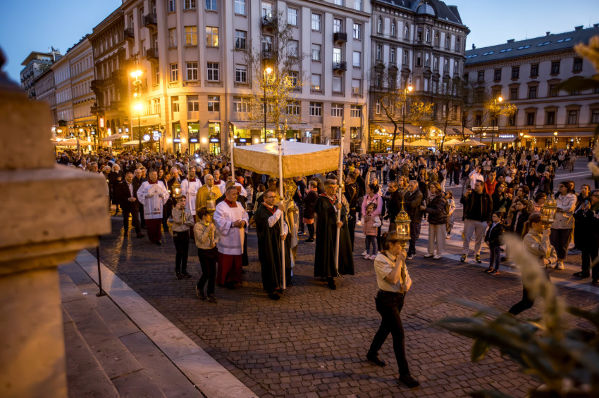 Az ünnepi liturgia végén a bíboros vezetésével feltámadási körmenetet tartottak a bazilika körül.