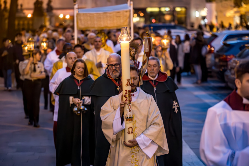 Miután a bazilikában a húsvéti gyertyáról szétosztották Krisztus világosságát, meggyúltak a fények, felcsendült a húsvéti örömének, az Exultet, mely szövegéből megértjük, hogy a gyertya fénye miként szimbolizálja a feltámadást és a megváltást.