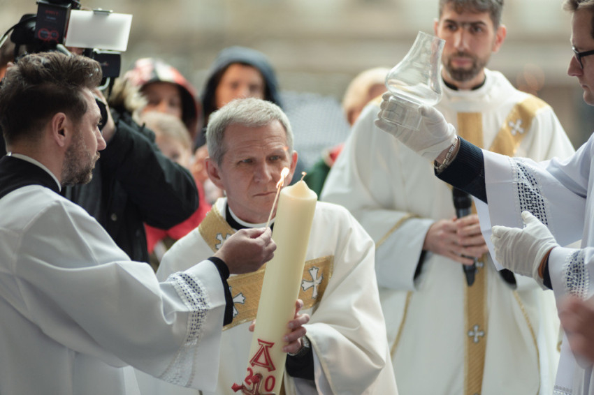 A tavalyi évhez hasonlóan, most is esős este volt nagyszombaton, de a híveket ez sem tartotta vissza: már a szertartás előtt fél órával megtöltötték a padsorokat, várva, hogy felgyúljanak a fények a húsvéti gyertyáról és felzendüljön az Egyház legszebb öröméneke, az Exultet.