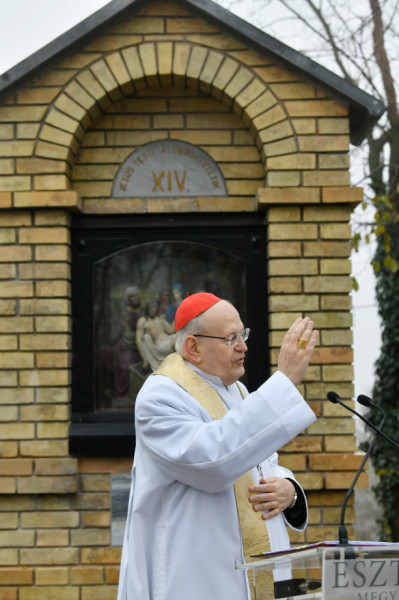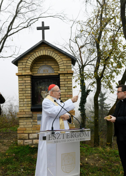 Erdő Péter köszönetet mondott a város vezetőinek és mindazoknak, akik adományaikkal, munkájukkal, szakértelmükkel vagy imádságukkal hozzájárultak a kálvária megújulásához.