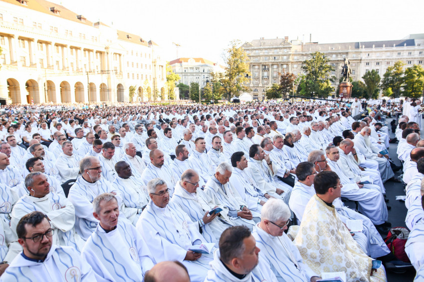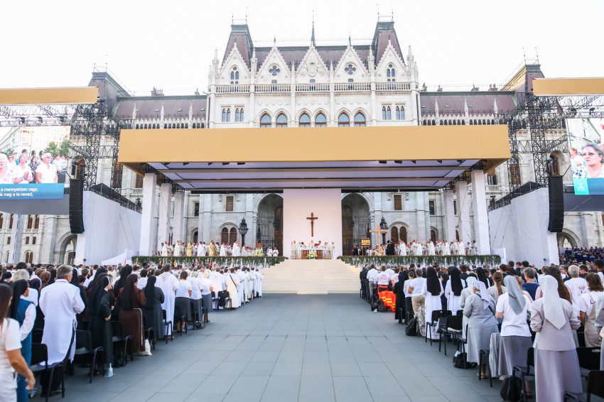 1. A gondviselő Isten különös ajándéka, hogy az eucharisztikus kongresszus lezárása előtt együtt ünnepelhetünk itt, a nemzet főterén. A Parlament épületében most egyszerre jelen van a Szent Korona és legbecsesebb ereklyénk, a Szent Jobb. A mise kezdete előtt halhattuk Bartholomaiosz kostantinápolyi pátriárka szavait. Ezúton is köszönetet mondok neki azért az értékes és szimbolikus jelentésben gazdag tettért, hogy eljött közénk és szólt hozzánk. Ő volt az, aki 2000-ben itt, Budapesten az ortodox egyház számára is szentté avatta első királyunkat, Szent Istvánt. Ezzel is arra emlékeztet, hogy első királyunk halálakor 1038-ban még egységben volt a keleti és a nyugati kereszténység. Ez az egység pedig magának Krisztusnak az akarata, hiszen Ő azért imádkozott, hogy tanítványai egyek legyenek, és így elhiggye a világ, hogy az Atya küldte Őt (vö. Jn 17,21). Mai világunknak égetően szüksége van az egységes kereszténység tanúságtételére.