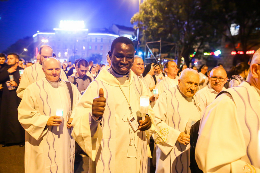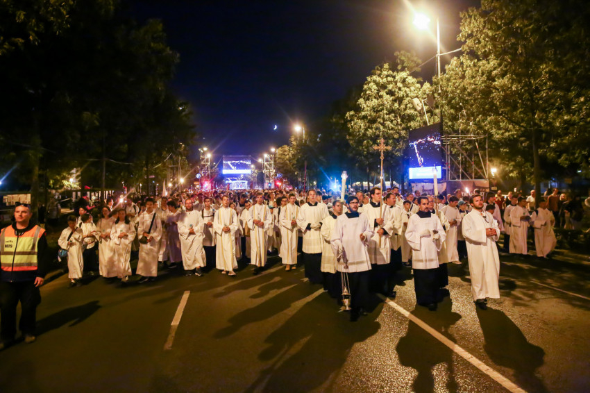 Mert a Mester testét átszegezték, vérét kiontották, de harmadnap feltámadt a halálból. Ezért égnek hát a gyertyák, ezért hangzanak el újra és újra a szavak családi otthonokban, fényes templomokban, börtönökben és munkatáborokban, titokban és nyilvánosan. Mi, papok pedig ezért vagyunk. Ezért indulunk ma a szentmise után az Oltáriszentséggel gyertyás körmenetre, hogy elmondjuk a városnak és a világnak Krisztus jelenlétének csodáját és kérjük az Ő áldását mindannyiunkra. Amen.