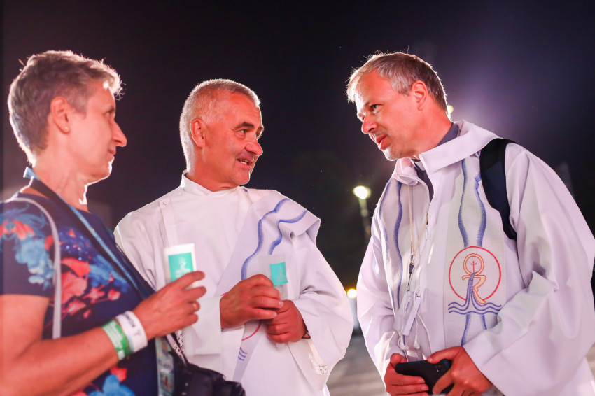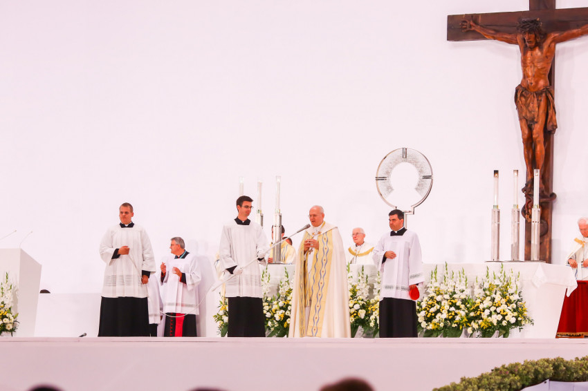 És mi mit tegyünk? Ihletet meríthetünk a szentek és tanúságtevők életéből, de vannak konkrét lehetőségeink is a cselekvésre. Ezért tartottunk közös étkezést sok száz rászorulóval a kongresszus nyitómiséje előtti napon a II. János Pál pápa téren és hazánk számos városában. Önkéntesek ezrei veszik ki a részüket a kongresszus munkájában. Diszkrét szolgálatukkal ők is, most is a rászorulókat, az eligazítást kérőket, a mozgássérülteket és mindazokat segítik, akiknek egy világos szóra és egy baráti kézre van szükségük. Erről a szeretetről tesznek tanúságot a ministránsok is, akiknek országos találkozóját most, ezen a szentmisén tartjuk.