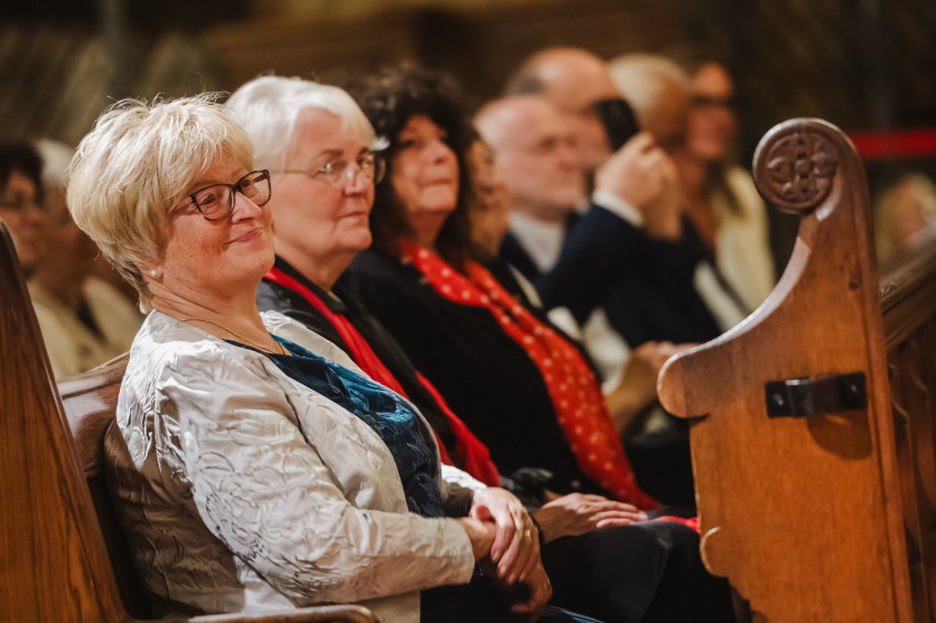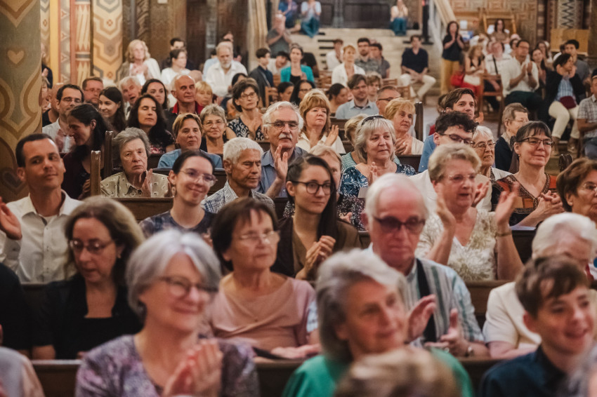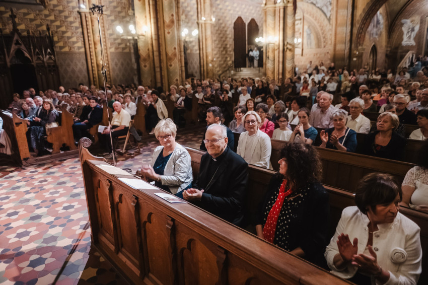 Amikor egy héttel ezelőtt XIV. Leó pápa szentté avatta Carlo Acutist, felidézte életét és szavait, köztük azt a meglátását, hogy boldog senki nem lehet attól, ha magára fókuszál, csak attól, hogy tekintetét felemeli és Istenre szegezi” – kezdte beszédét Nagy Zsuzsanna asszony. – A szakrális művészetet ugyanez jellemzi. Mindig a végtelenre mutat, felemeli a tekintetet, a gondolatokat, a lelkeket, lehetünk akár szabad téren vagy épített környezetben, világi vagy egyházi épületben, csendben vagy koncertteremben. A szakrális művészet légköre mindenkinek békét, vigasztalást nyújt, elhozza a szépséget, a megfoghatatlant.