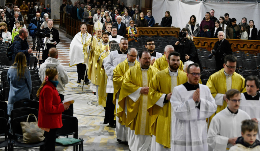 A főpásztor kiemelte: most van itt az idő a hálaadásra. „Most imádhatjuk a legnagyobb örömmel az Oltáriszentséget. Most virraszthatunk a szenvedésére készülő Krisztus mellett az Olajfák hegyén, hogy megköszönjük neki értünk adott és nekünk kiosztott életét.”