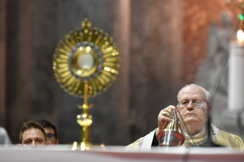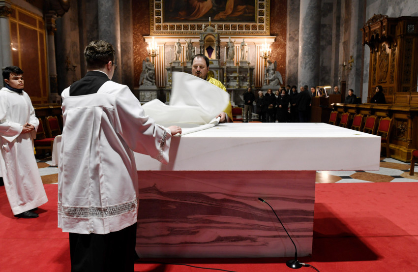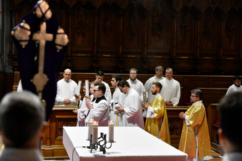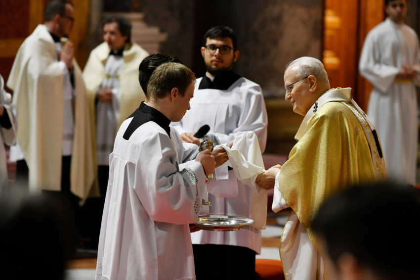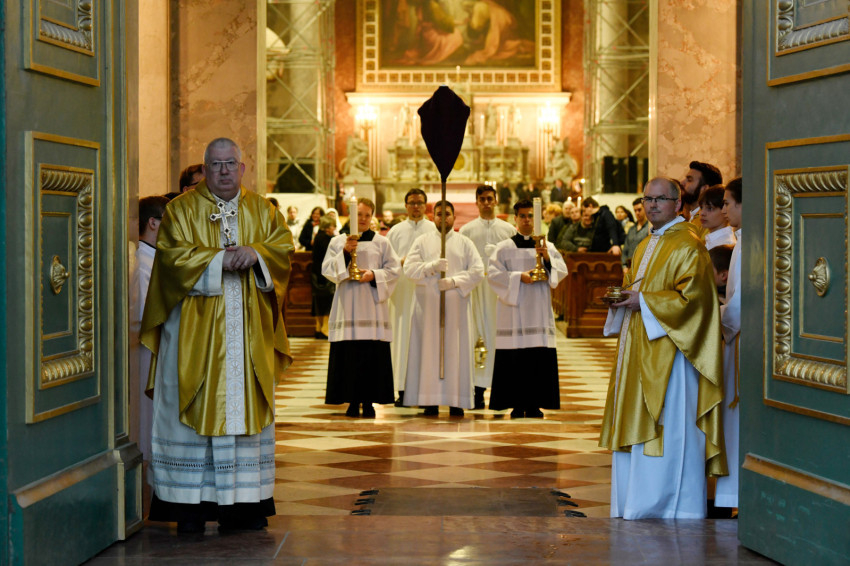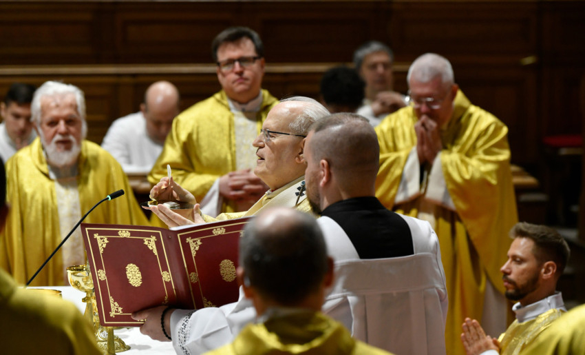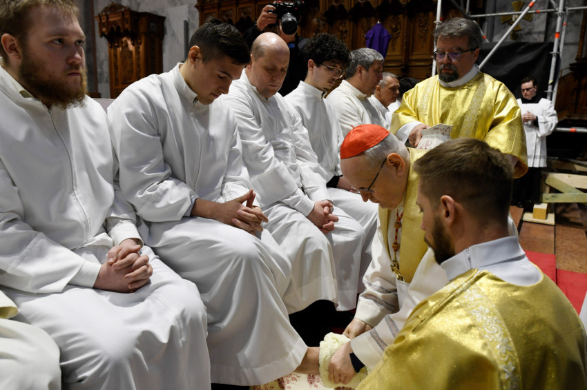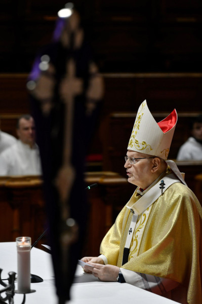 A bíboros homíliájában emlékeztetett: három fő titkot ünneplünk a nagycsütörtök esti szentmisében: az Oltáriszentség és az egyházi rend szentségének alapítását, valamint a testvéri szeretet parancsát. Ezért ez az egyetlen húsvéti titok szentségi pillanata.