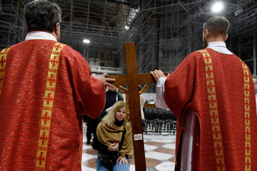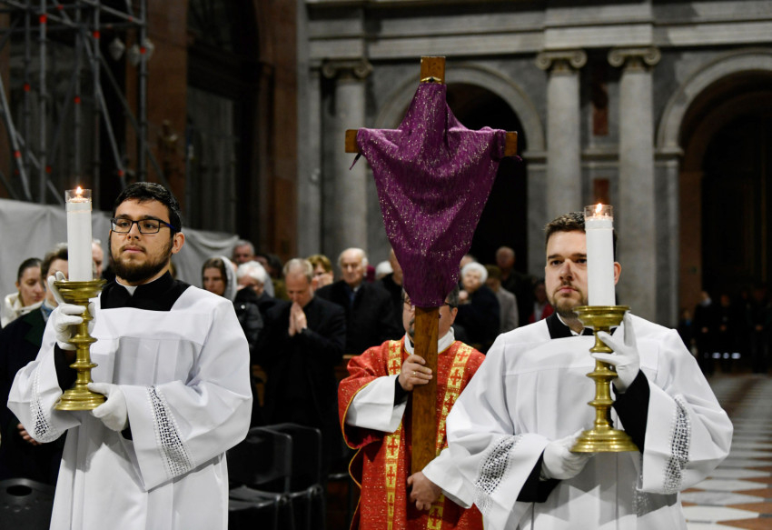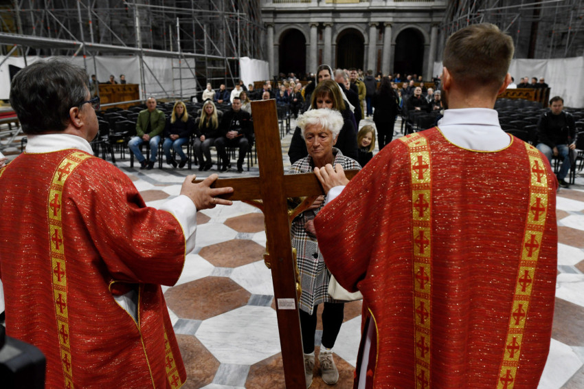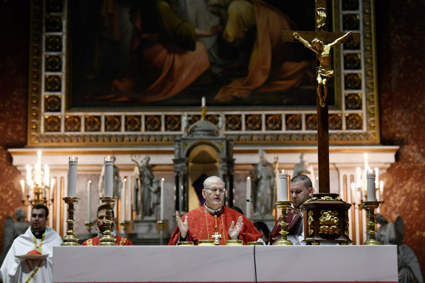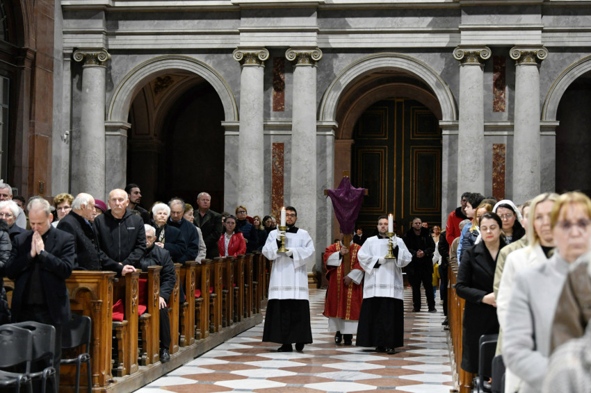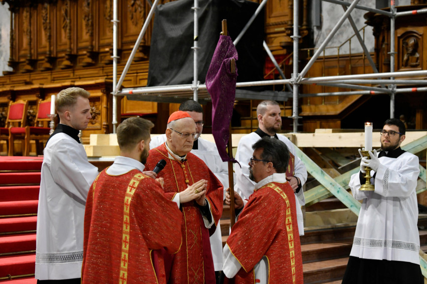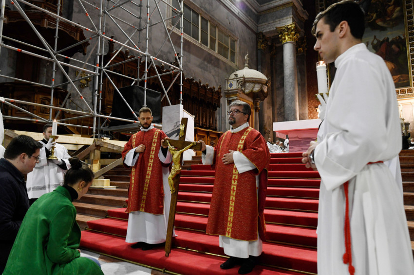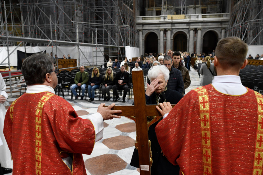 Erdő Péter bíboros a homíliájában rámutatott: Krisztus kereszthalála az Atyának mindhalálig engedelmes Istenember szeretetének drámája. Nem a fizikai szenvedés, hanem az engedelmes szeretet éri el benne csúcspontját a világ történetében. Krisztus mindenkiért meghalt, és azért halt meg mindenkiért, hogy akik élnek, ne maguknak éljenek, hanem annak, aki értük meghalt és feltámadt. A főpásztor kiemelte: előttünk a szabadság lehetősége, előttünk a viszontszeretet útja.