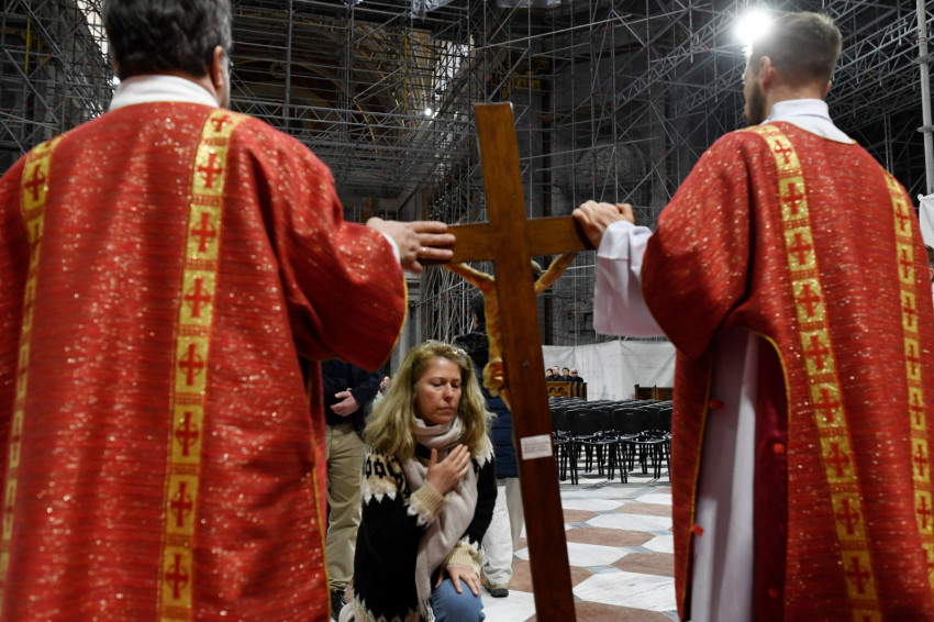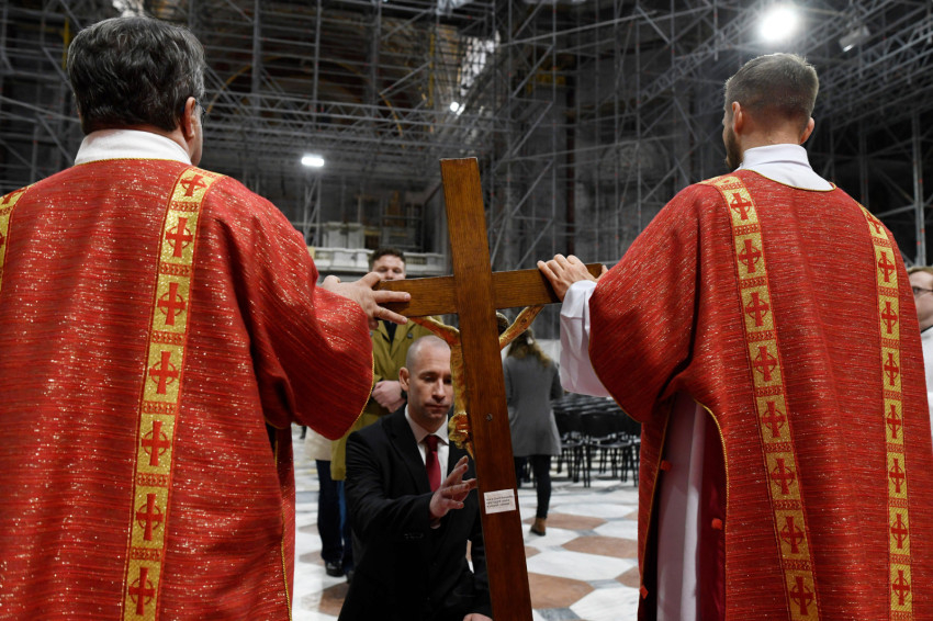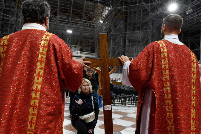 Ezután következett a kereszthódolat: a leleplezett feszület előtt – melyen láthatóvá vált a Megváltó megkínzott, feláldozott teste – először Erdő Péter bíboros és az asszisztencia, majd a hívek hajtottak térdet.