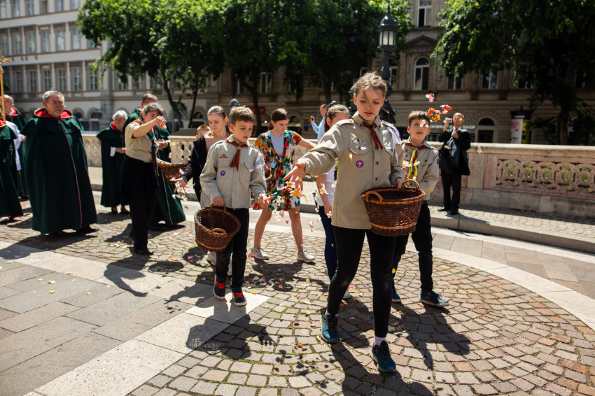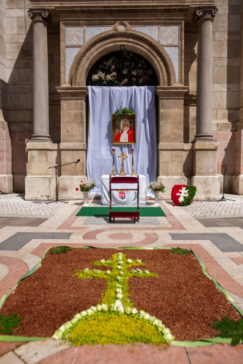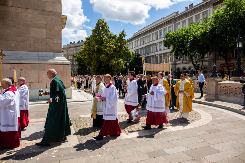 Az úrnapi körmeneten a szentségi Jézussal tanúságot akarunk tenni a világ előtt – emelte ki szentbeszédében a főpásztor. – Isten zarándoknépe vagyunk. Zarándokok, és nem csellengők. Zarándokok, és nem kóborlók. Mert nem céltalanul sodródunk a világban, hanem egyénileg és közösségileg is egy nagy cél felé tartunk. Tudjuk, honnan jöttünk és hová megyünk.