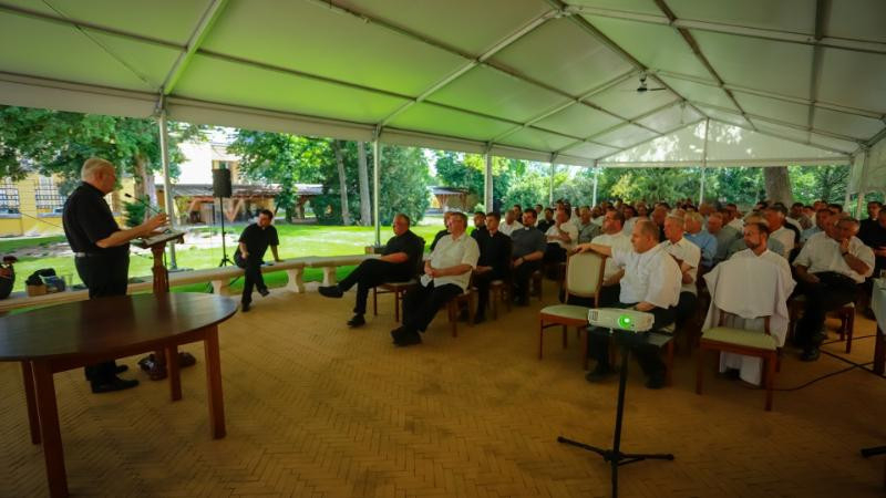 A program az érseki székház elé felállított rendezvénysátorban kezdődött, ahol Erdő Péter bíboros tartott előadást az 52. Nemzetközi Eucharisztikus Kongresszusra való készület jegyében. A gyakorlati szempontokat is felsorakoztató előadás sok fontos információval szolgált a lelkipásztoroknak, akik ezt követően kérdéseikre is választ kaphattak.