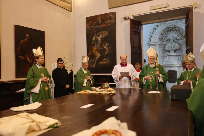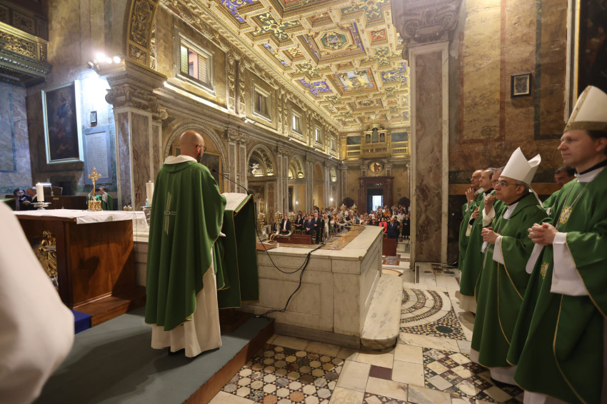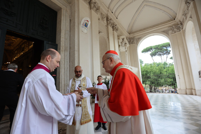 Az ünnepélyes liturgia kezdetén Benedetto Toglia, a rend prokurátora köszöntötte a főpásztort, és örömét fejezte ki, hogy a címtemplomnak új tulajdonosa van a magyar bíboros személyében.
