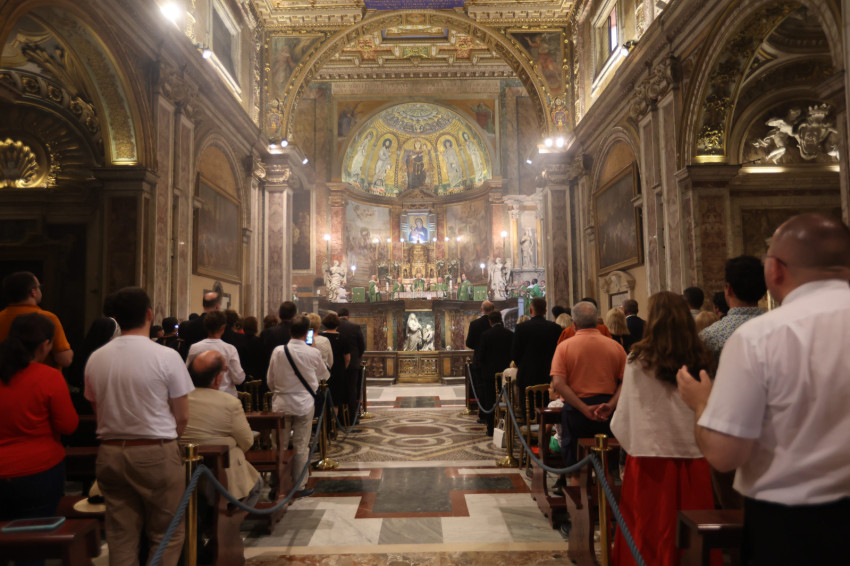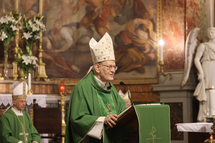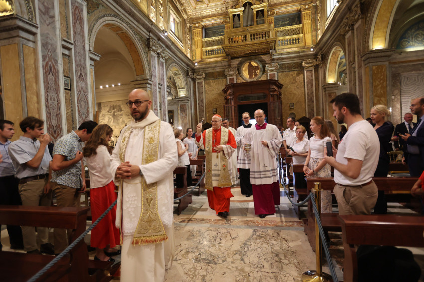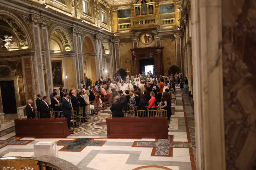 A zsúfolásig megtelt Szent Franciska-bazilikában jelen volt Angelo Bagnasco bíboros, az olasz püspöki konferencia és az Európai Püspöki Konferenciák Tanácsa (CCEE) emeritus elnöke; Piero Marini érsek, nyugalmazott pápai szertartó, a Nemzetközi Eucharisztikus Kongresszusok Pápai Bizottságának egykori elnöke; Giuseppe Sciacca érsek, továbbá számos püspök és apát. Együtt ünnepelt az egybegyűltekkel a kanadai John Dunlap, a Máltai Lovagrend nagymestere; Habsburg-Lotharingiai Eduárd szentszéki magyar nagykövet; Kovács Ádám Zoltán római magyar nagykövet és Németh Norbert, a Pápai Magyar Intézet rektora. A szentmisén együtt ünnepelt Mohos Gábor esztergom-budapesti segédpüspök; Süllei László, az Esztergom-Budapesti Főegyházmegye általános helynöke és a főegyházmegye hivatalának munkatársai.