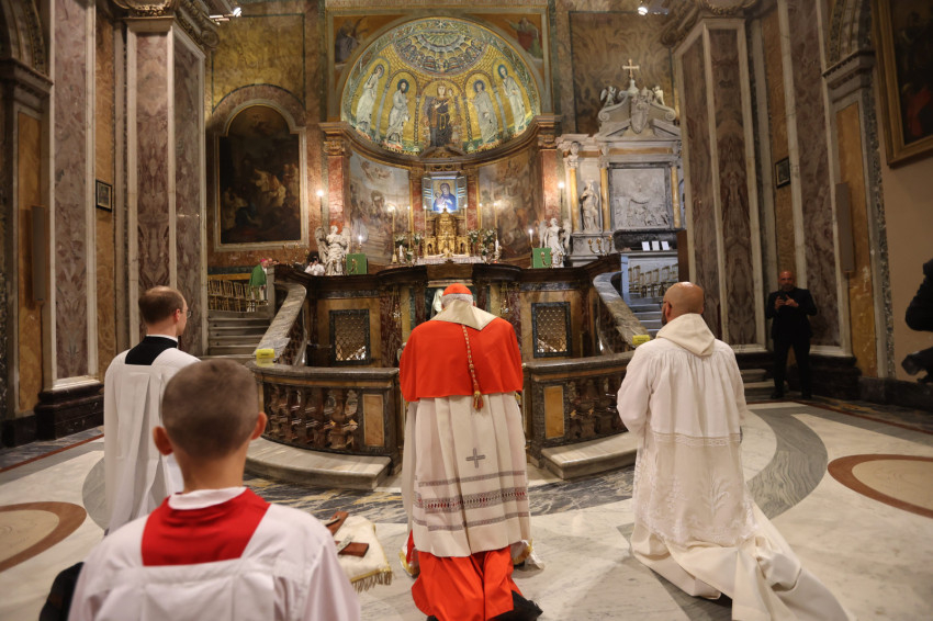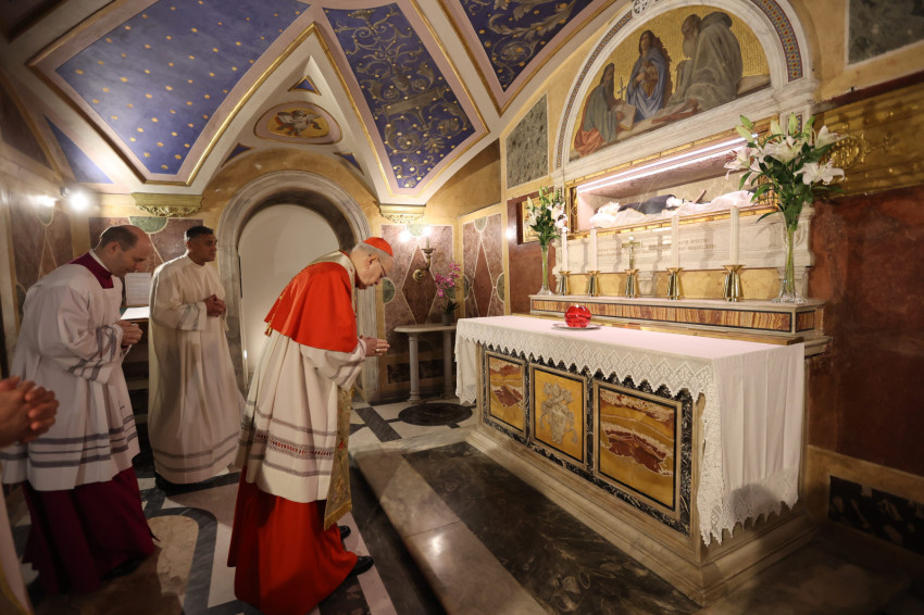Erdő Péter bíboros Római Szent Franciska sírjánál