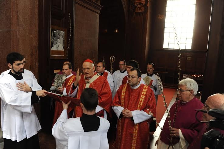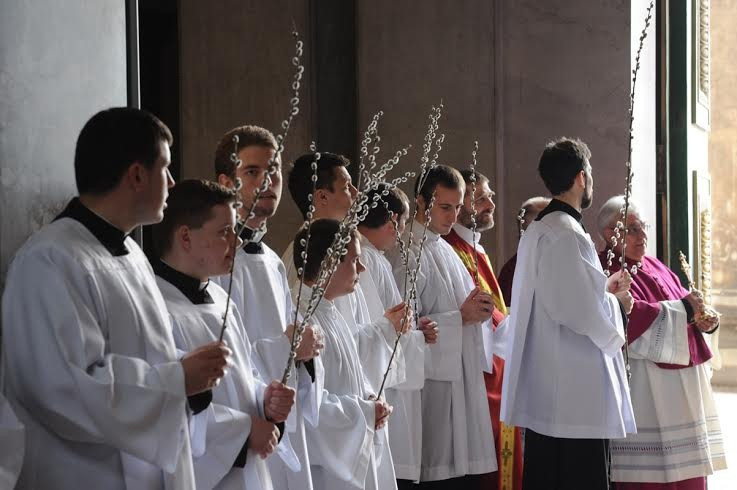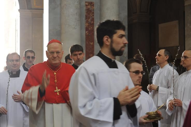 A virágvasárnapi szentmise az esztergomi bazilikában, a Bakócz-kápolna előtt a barkák ünnepélyes megáldásával kezdődött, melyet Jézus jeruzsálemi bevonulására emlékező körmenet követett.