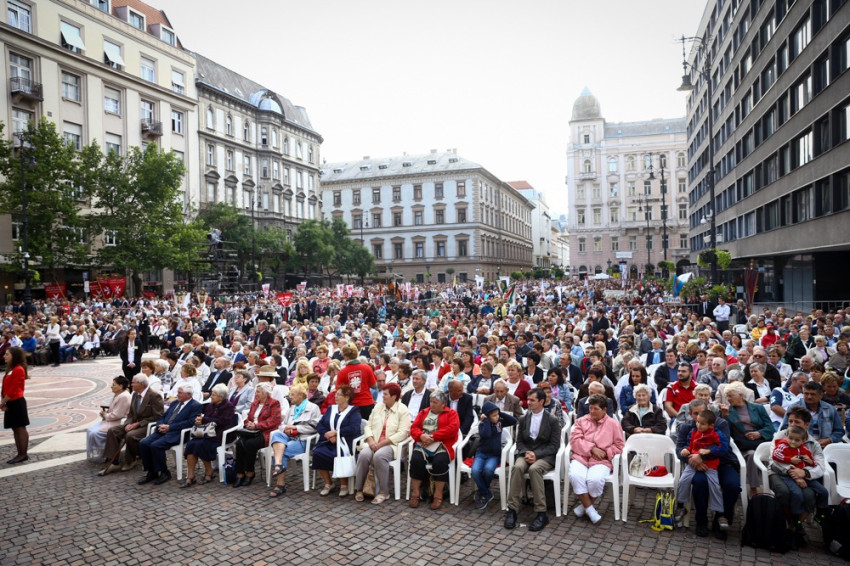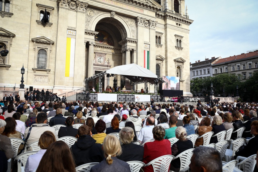 5. Szent István király élete végén országát a Boldogságos Szűz Máriának ajánlotta. Mert minden nagylelkű igyekezet és minden emberi bölcsesség kevésnek bizonyulhat egy drámai történelmi helyzetben. István király azonban még élete végén is tanít minket. Arra tanít, hogy minden igyekezetünkön túl szükségünk van a bizalomra. Mert Isten nem hagy magunkra minket, gondja van ránk. Mindannyiunkat egyénileg is az örök boldogságra hív, de a Teremtő szeretetével nézi a népeket is. Szűz Mária mindannyiunk édesanyja. De nekünk, magyaroknak, különösen is Nagyasszonyunk és Patrónánk. Bízzunk hát szabadító segítségében. Majdnem háromszázharminc éve, hogy Buda felszabadult, hogy a Mátyás-templomból újra keresztény templom lett, hogy itt, a Kárpát-medence közepén megújult a kereszténység és a magyarság. Ezzel a bizalommal kérjük most is: Magyarok Nagyasszonya, Boldogságos Szűz Mária, könyörögj értünk! Szent István király, könyörögj értünk! Ámen.