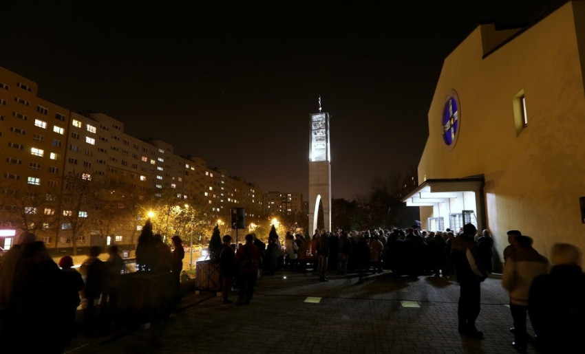 Szentmisével ünnepelte újonnan épült temploma szentelését a Szent Adalbert-plébánia közössége. A templombelsőt zsúfolásig megtöltötték a hívek, sőt, a templom előtti teraszt és lépcsőzetet is. A szertartáson mintegy 40 pap vett részt, továbbá szerzetesrendek képviselői, közéleti személyiségek, köztük Soltész Miklós egyházi, nemzetiségi és civil társadalmi kapcsolatokért felelős államtitkár. A szentmisén jelen volt Székely János püspök.