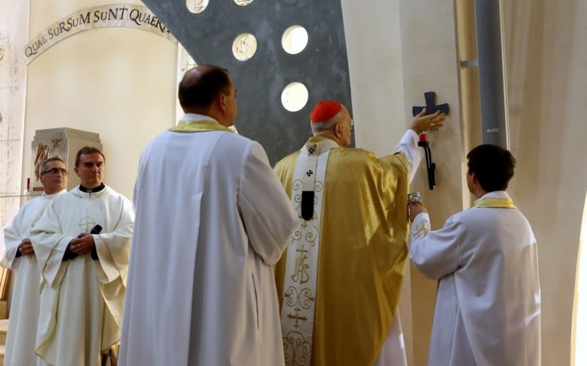 A templomkülső szentelésével kezdődő szertartás szentmiséjét Erdő Péter bíboros mutatta be.