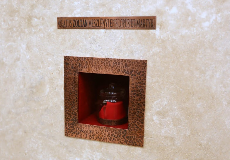 „Ezt a templomot, amely hosszú évtizedek várakozása után szintén a szabadság jelképe, boldog Meszlényi Zoltán vértanú püspök tiszteletére szenteljük. Ő is az Egyház szabadságáért áldozta életét. Ezért fogadta el az egyházmegye kormányzását, nehogy az egyházi közösség vezetése is hitetlen erők játéka legyen. Ez a döntése az életébe került. Ezért hurcolták el, ezért várt rá az internálótáborban a szenvedés és a mártírhalál” – mondta a bíboros.