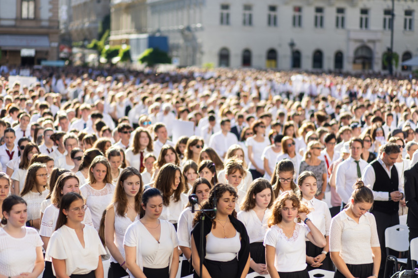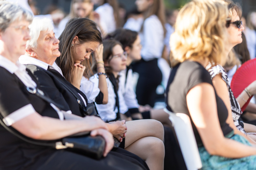 A bazilika előtti tér már délutánt megtelt: iskoláik ünneplő ruhájába öltözött diákok örültek újra egymásnak, és kérték a kegyelmet az előttük álló tanévben rájuk váró feladatokhoz.