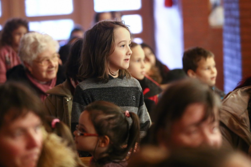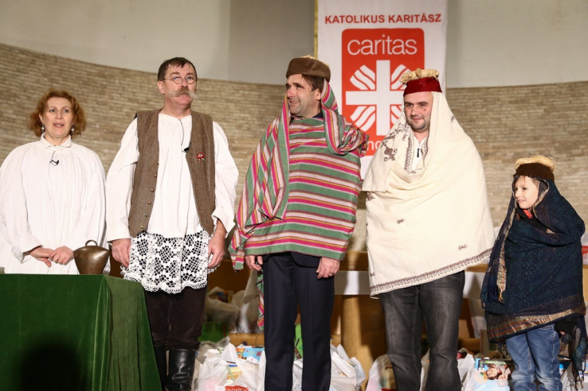 Ahogyan a korábbi években is előadással kedveskedtek a jelenlévőknek, idén a karitász igazgatójának köszöntője után a pécsi MárkusZínház népi betlehemes báb-előadása következett. Az ebben a hónapban nemcsak Magyarország több városában, hanem Franciaországban is bemutatott Betlehemi történet mind a gyerekeket, mind a felnőtteket bevonva hozta közelebb karácsony misztériumát a jelenlévőkhöz. Az előadás különlegessége az volt, hogy a pásztorok Betlehemet kereső útján a gyerekeknek kellett segíteniük megtalálni a helyes utat, illetve a három királyok szereplői is a sorok közül kerültek ki.