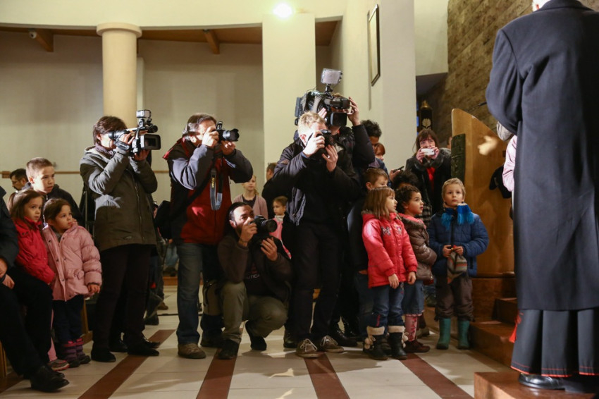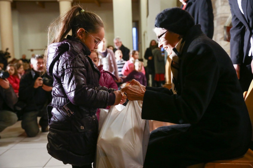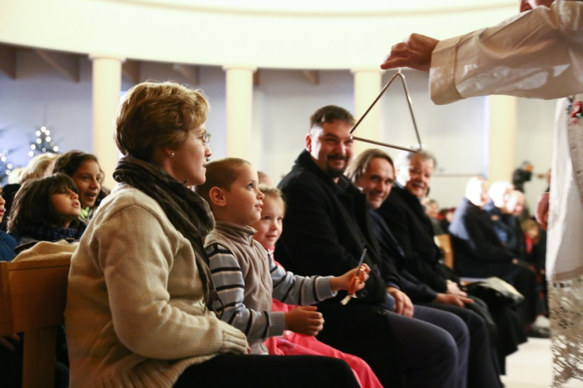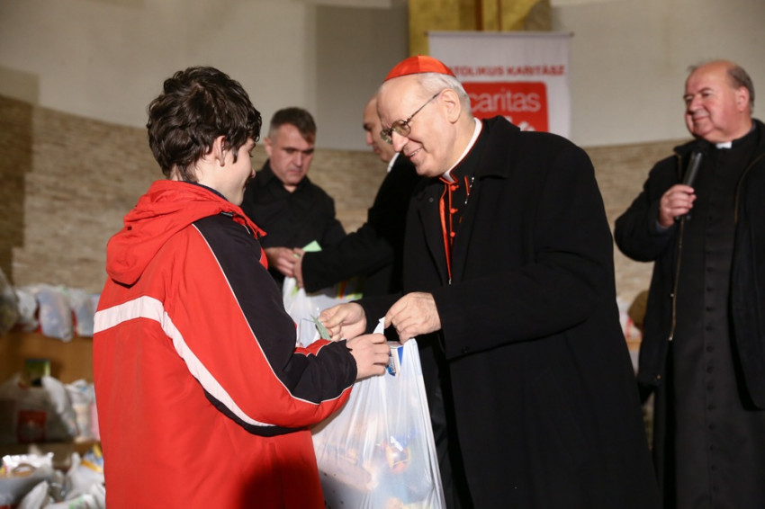 Écsy Gábor a Magyar Szentek templomában megrendezett ünnepség köszöntőjében utalt a „Gyermekek a gyermekekért” programra, amelynek keretében idén 15 ezer csomagot osztanak szét országszerte ezekben a napokban az egyházmegyei karitász csoportjai. Elmondta, hogy karácsony lényege az ajándékozás, amely a számunkra adatott legnagyobb ajándékban, Krisztusban nyeri el végső értelmét. Éppen ezért az örömhírt nemcsak tárgyi ajándékok által szerették volna megosztani, hanem egy mindenkinek szóló meglepetéssel is.