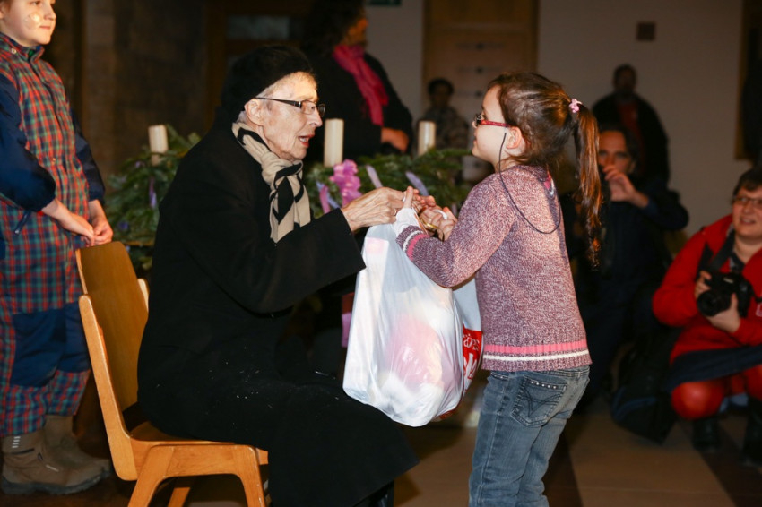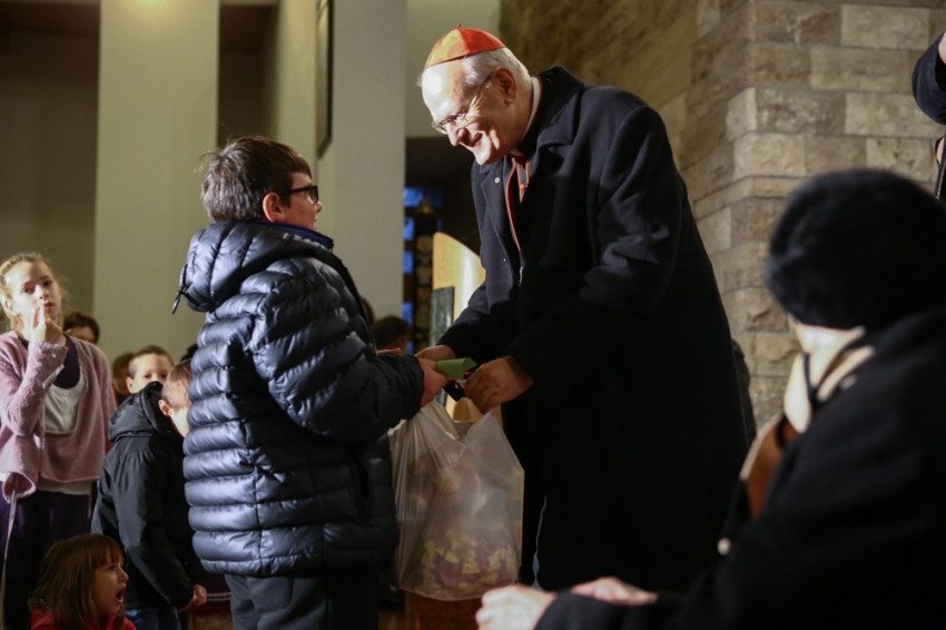 A bíborosi köszöntő után Erdő Péter és Mádl Dalma személyre szóló ajándékokat adtak át a jelen lévő, csaknem 300 gyereknek. A Budapest több plébániájáról érkező gyerekek között volt például Duka Jázmin és Blanka is, akik a 8. kerületi Béke Királynéja-templomhoz tartoznak. Csomagjaikban babákat, társasjátékokat, plüss állatkákat, írótáblát, és karácsonyi bejglit is kaptak.