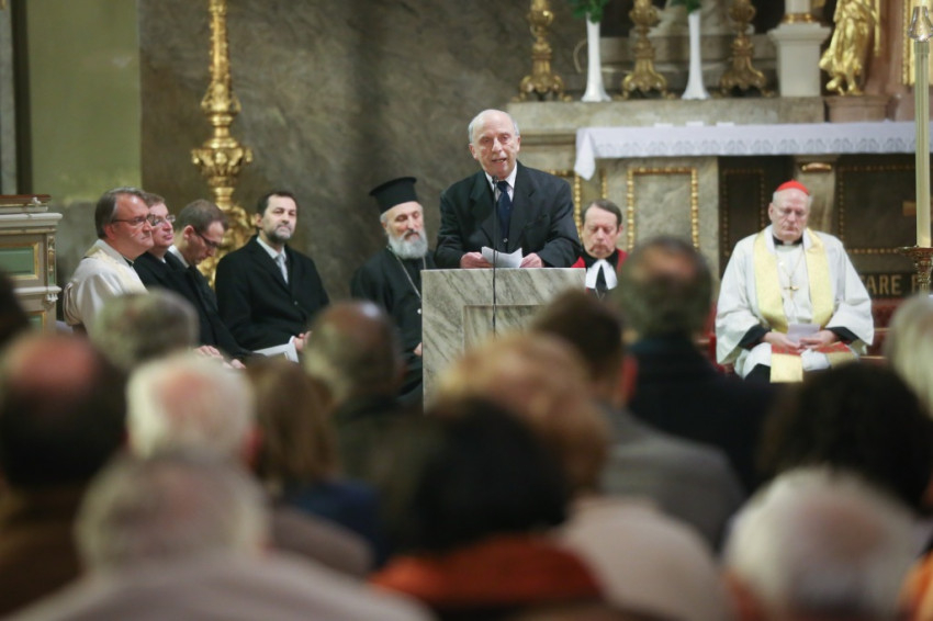„Minden keresztényben lakik egy zsidó. Senki sem lehet igaz keresztény, ha nem ismeri el zsidó gyökereit!” – Ferenc pápa tanítása szolgált mottóul az imaórán, amelyen Erdő Péter bíboros és Kardos Péter főrabbi mondott megnyitó beszédet. A negyedik alkalommal megrendezett keresztény-zsidó imaóra résztvevőit Horváth Zoltán, a terézvárosi Avilai Nagy Szent Teréz-templom plébánosa köszöntötte.