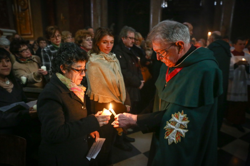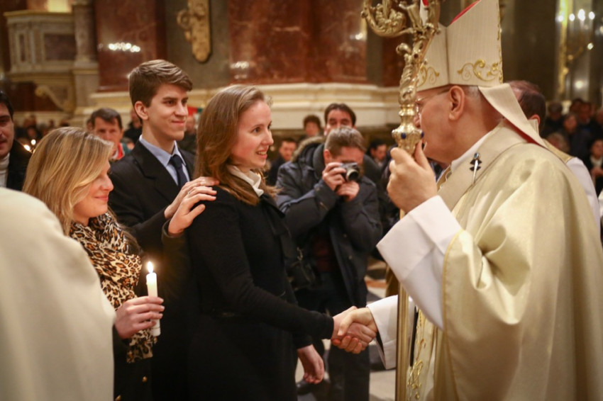 Erdő Péter bíboros a mindenszentek litániáját követően megáldotta a keresztelőkútban levő vizet, majd 26 felnőttet részesített a keresztség és a bérmálás szentségében – közülük ketten egy családot alkotnak, az ő gyermeküket szintén megkeresztelte. A főpásztor a megkeresztelteken kívül még hét felnőttet bérmált meg. A szertartás keretében valamennyi korábban megkeresztelt hívő is megújította keresztségi fogadalmát: hitet tett Isten mellett és ellene mondott a sátánnak.