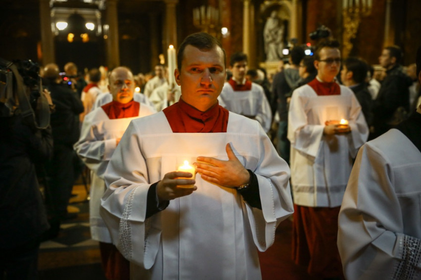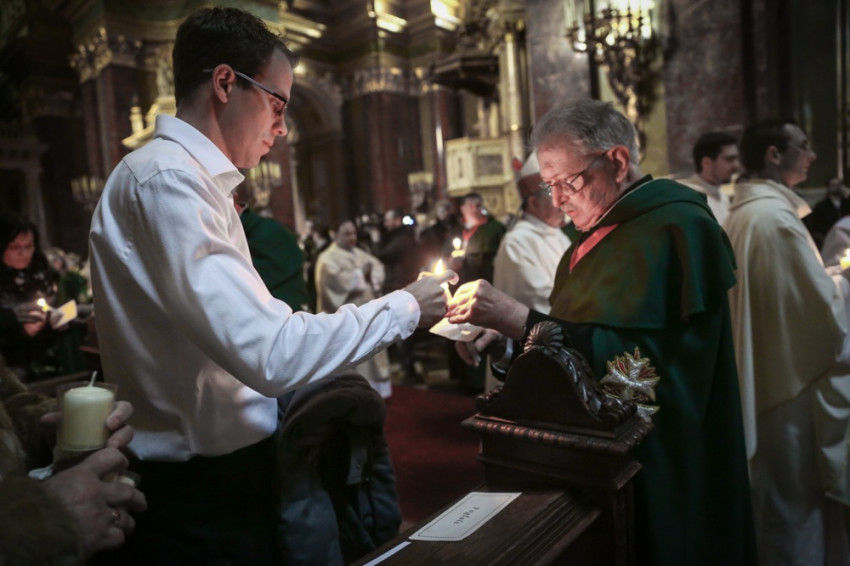 A húsvét vigíliai szentmisén Cserháti Ferenc és Snell György, az Esztergom-Budapesti Főegyházmegye segédpüspökei koncelebráltak.