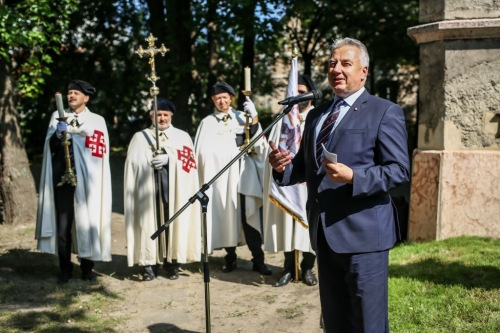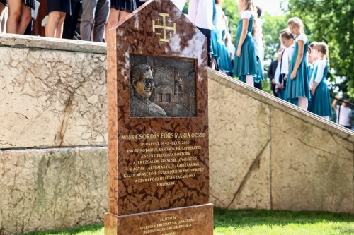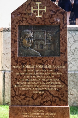 A szentmise után a kápolna kertjében került sor Csordás Eörs Mária emlékkövének megáldására. A 2 méteres, sóskúti márványból és bronzból készült sztélé Rieger Tibor Kossuth-díjas szobrászművész alkotása. Az ünnepségen Jungbert Béla, a Jeruzsálemi Szent Sír Lovagrend magyarországi helytartója elmondta, hogy az emlékkő a rend tagjainak adományaiból és az Emberi Erőforrások Minisztériuma támogatásával készülhetett el. Mint kiemelte, Csordás Eörsnek – aki a Jeruzsálemi Szent Sír Lovagrend koadjutor nagyperjele volt – nagy szerepe volt a Szent Sír-lovagok magyarországi visszatelepülésében. Fontos volt számára a fiatalok és a kispapok nevelése. Munkásságának középpontjában állt a kánonjog művelése, a magyarországi Katolikus Egyház megerősítése és a szentföldi keresztények támogatása.