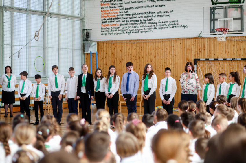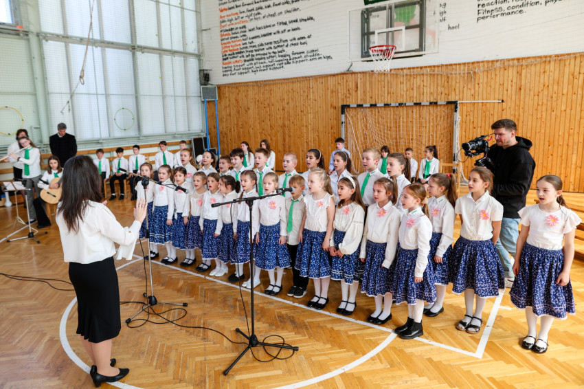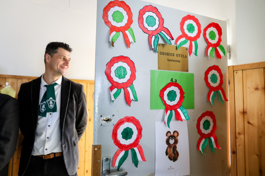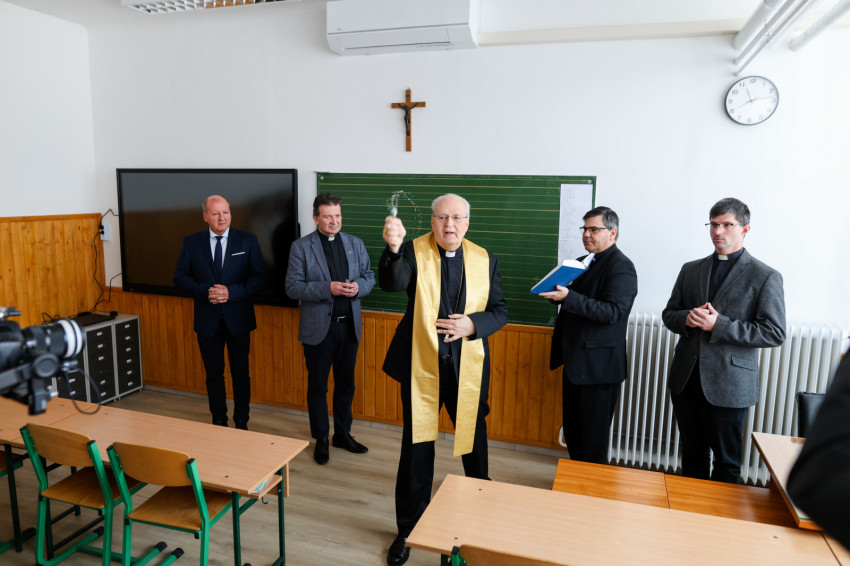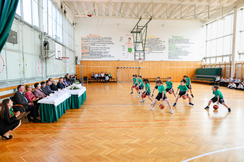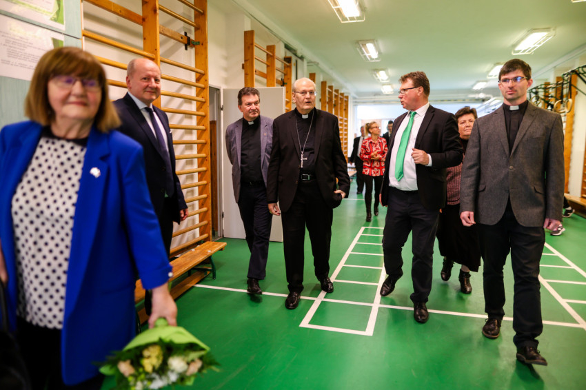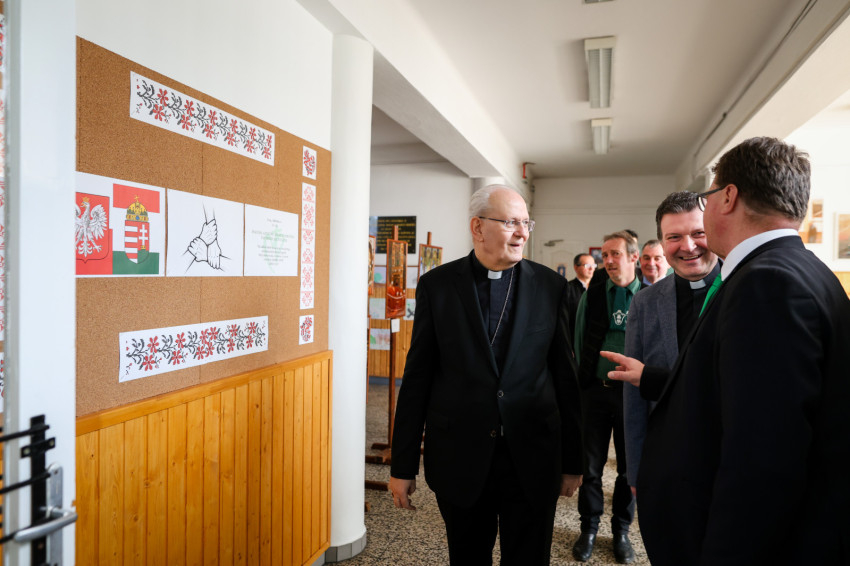 Kis Mihály igazgató az ünnepi műsor után körbevezette a főpásztort és a vendégeket az intézményben, megtekinthették a Szent Korona-kiállítást, majd a tanulók sportbemutatóját.