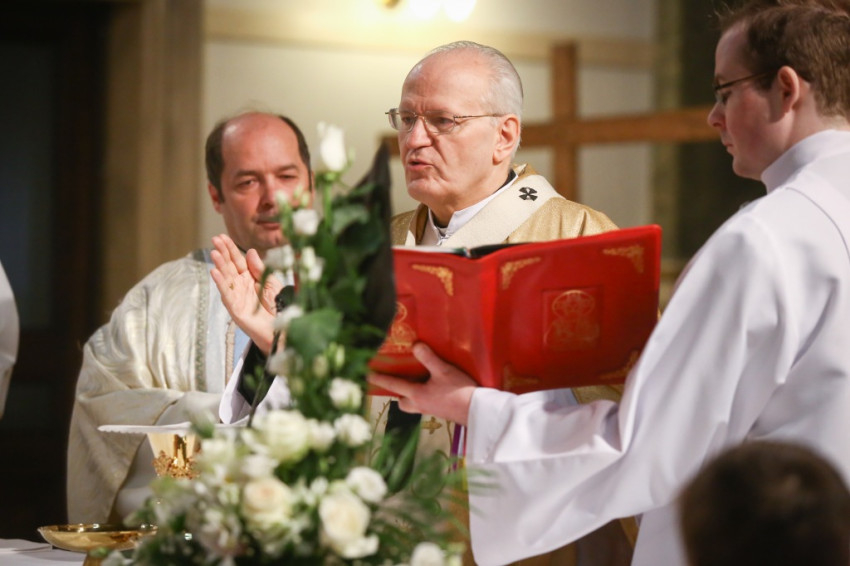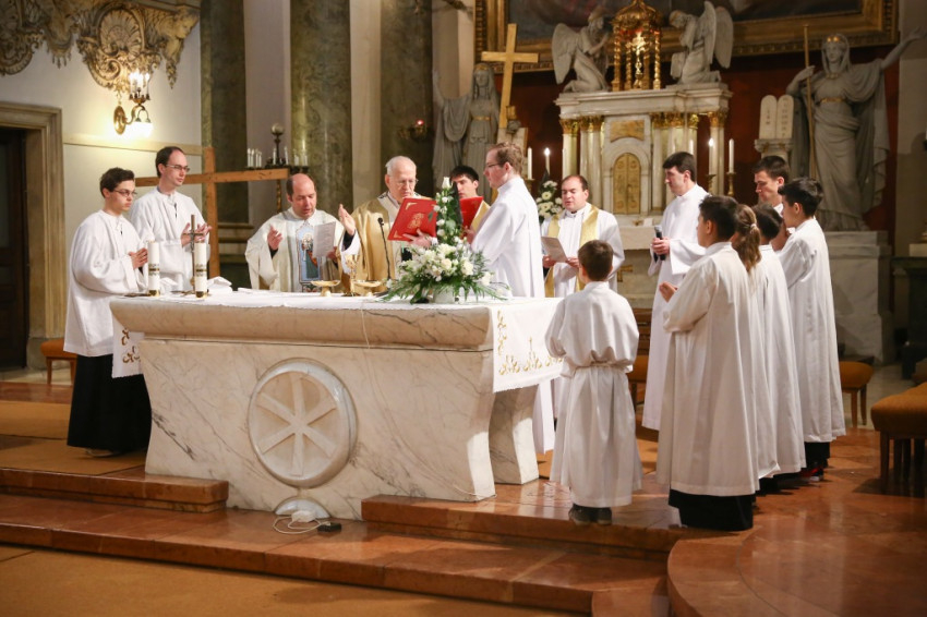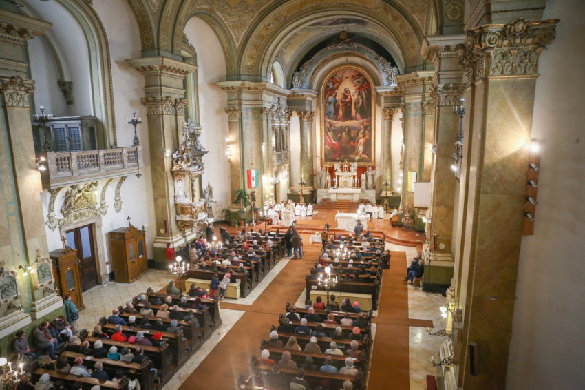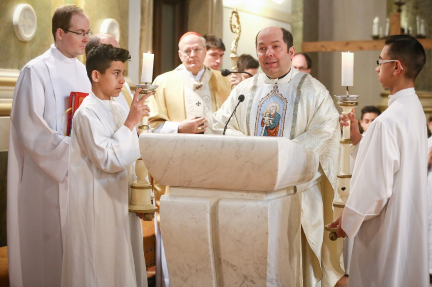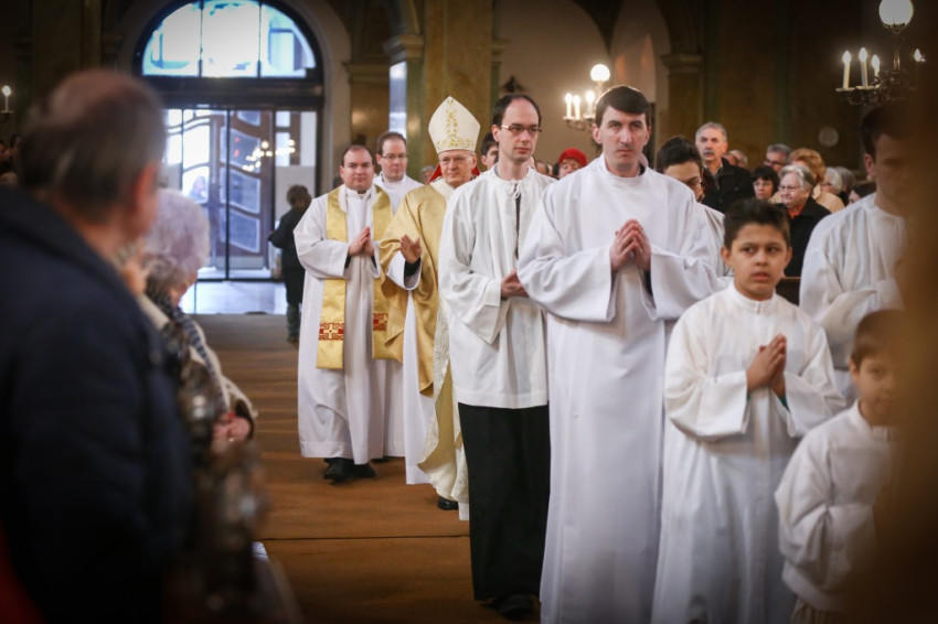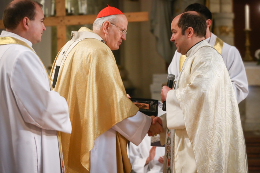 Erdő Péter köszöntő beszédében elmondta, rendkívül nagy öröm számára, hogy itt lehet a Szent József-templomban, hiszen ehhez a plébániához kötik a gyerekkori emlékek: itt keresztelték, ebben a templomban ministrált hajdan.