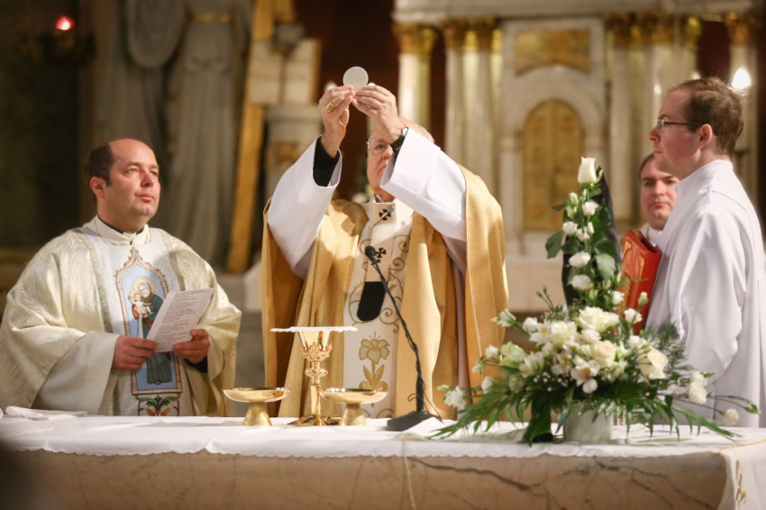 A plébánia védőszentjének nemcsak közbenjárásában bízhatunk – fogalmazott a főpásztor –, hanem példaképként is tekinthetünk rá; tisztaságát, hűségét, alázatosságát magunk elé állíthatjuk életünkben. József nem főszereplő, de közreműködött a megváltás művében. Nekünk is akkor válik igazán értelmessé és értékadóvá az életünk, ha keressük Isten szándékát, és vállaljuk azt, amiről felismertük, hogy az ő akarata. Akkor a mi életünk sem puszta sodródás, hanem közreműködés abban a nagyszerű isteni tervben, amelynek célja, hogy mindannyian boldogok lehessünk – hangsúlyozta Erdő Péter.