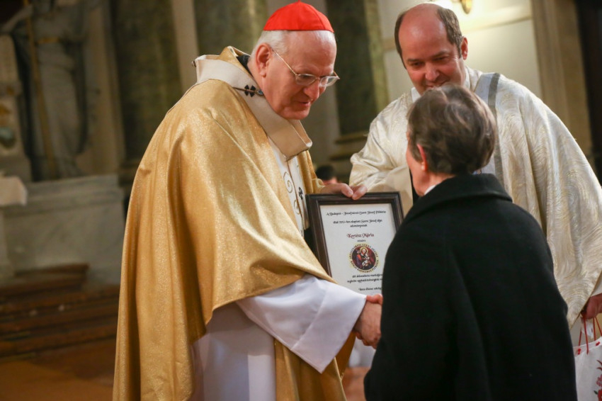 Az idei díjazottnak, Kertész Máriának Erdő Péter nyújtotta át az elismerést. Kertész Mária az immár tíz éve működő Szent József az idősekért alapítvány ügyeit intézi hosszú évek óta önkéntesként. A rászoruló, magányos időseket élelmiszerrel, étkezési utalvánnyal, mosóporral és számos más módon segítik, az idősek klubja révén pedig lelki támogatásban részesítik őket.
