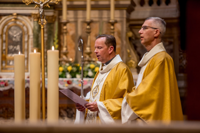 A szentmise folytatásában az újmisés lelkipásztor, valamint a nyolc új diakónus csatlakozott főpásztorához az áldozat bemutatásában és ünneplésében.