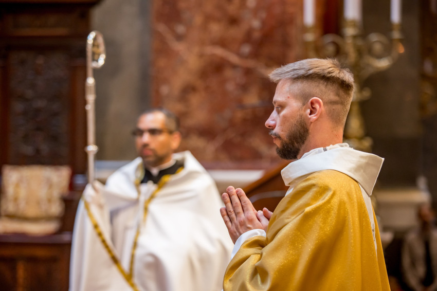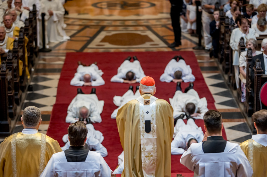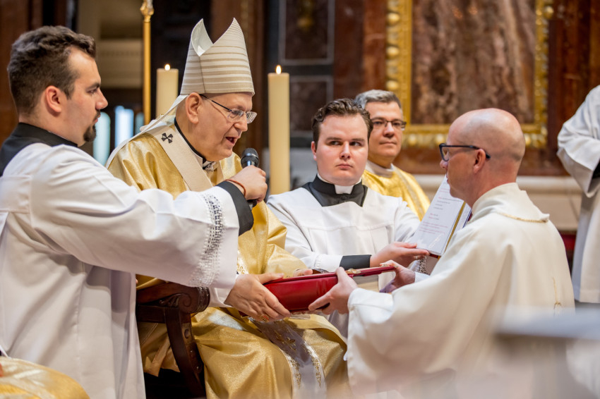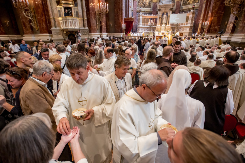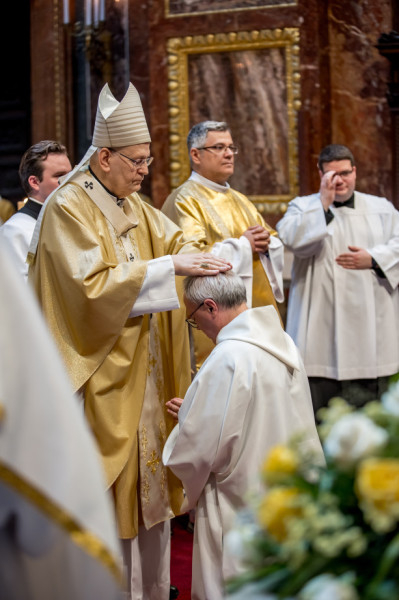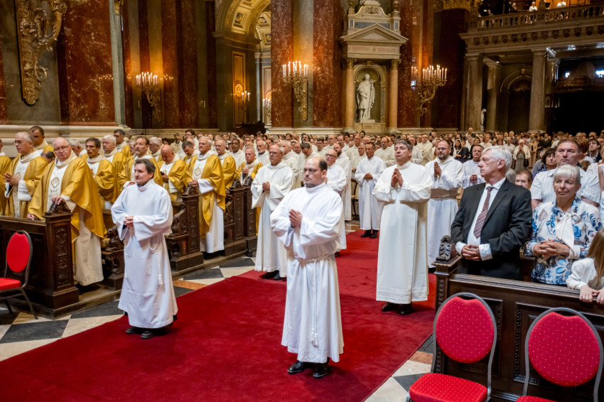 Ebben a roppant összefüggésben áll a mi papi és diakónusi szolgálatunk. Ezért olyan nagy ajándék, hogy az idén újra papot és számos diakónust szentelhetünk itt, a budapesti bazilikában. Kérjük számukra, Egyházunk és népünk számára Isten áldását, jelenlétének biztató és felemelő erejét. Ámen.