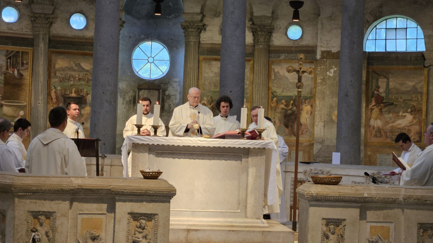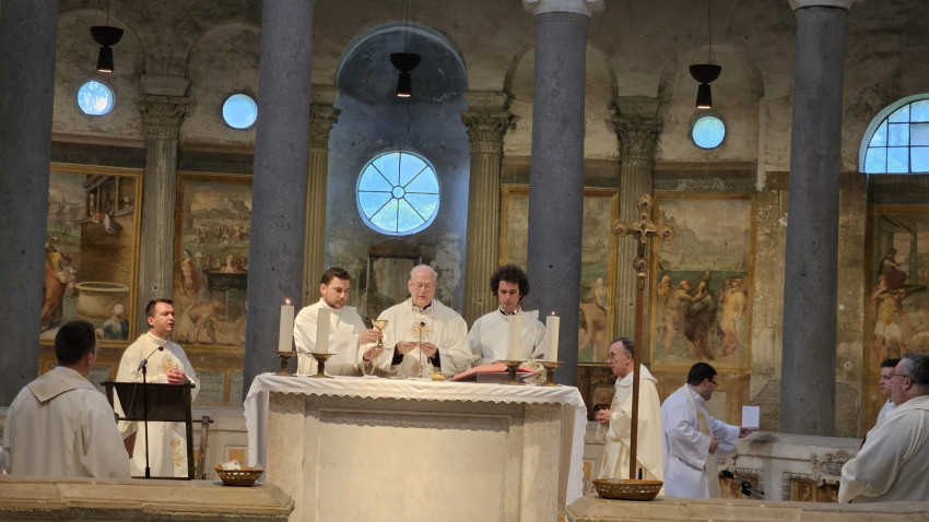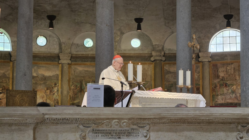 Ferenc pápa temetésének másnapján, az isteni irgalmasság Szent II. János Pál pápa alapította ünnepén Erdő Péter bíboros, prímás a római Santo Stefano Rotondóban celebrált szentmisét.