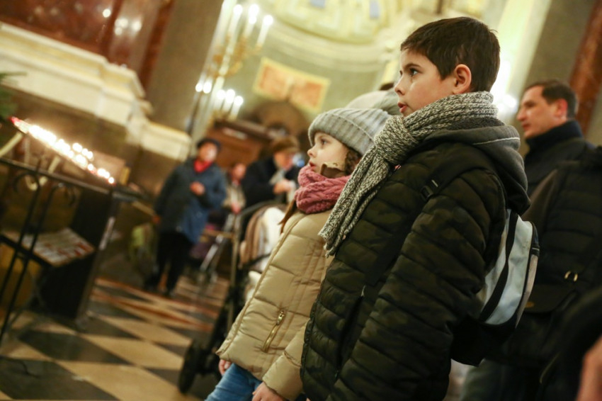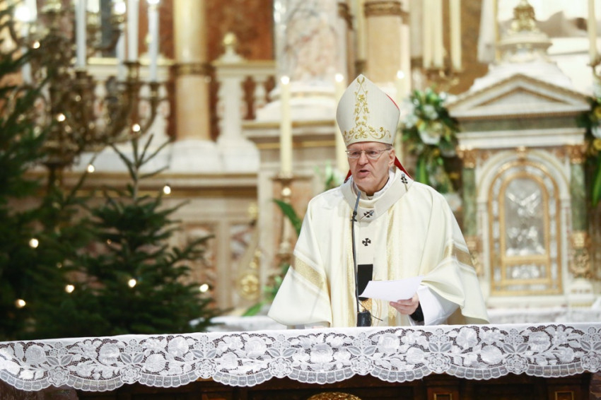 A szertartás rendhagyó módon kezdődött: az asszisztencia és a papok megszakították a bevonulást a budapesti bazilika betlehemje előtt, és Erdő Péter vezetésével ott imádkozták el Ferenc pápa ez alkalomra írott imáját, amely a Szent Család, Jézus, Mária és József oltalmát kéri a családokra. A szentmise köszöntő szavaiban a bíboros reményét fejezte ki, hogy az emberségnek és szeretetnek a – názáreti szent családban megjelenő – gazdagságát „mi is jelenlévővé tudjuk tenni környezetünkben”.