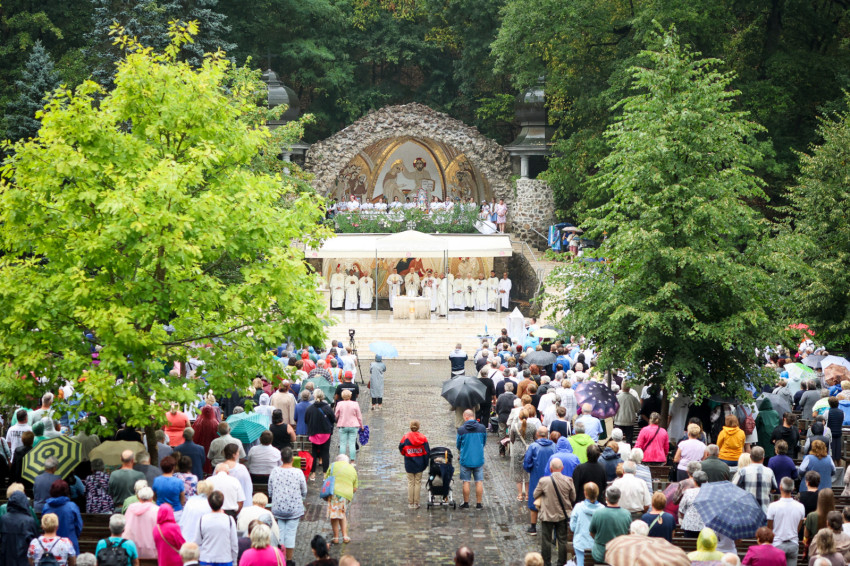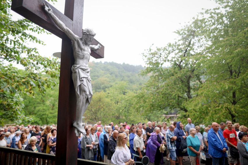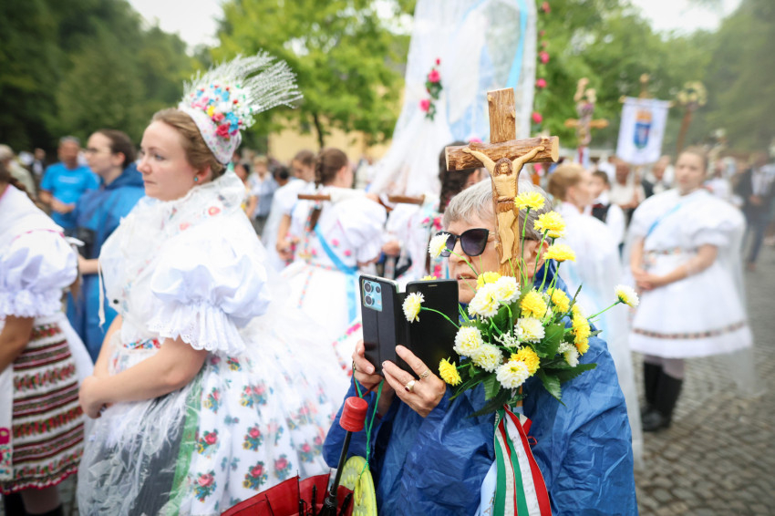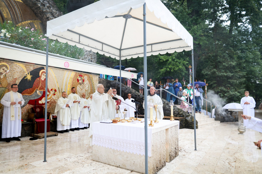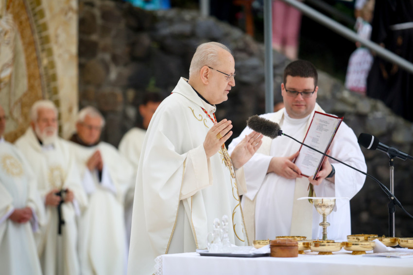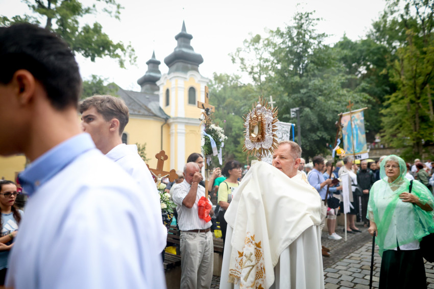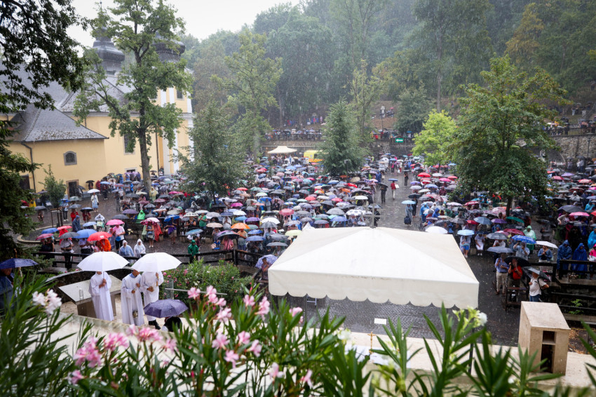 Vasárnap délelőtt esett az eső a hetek óta tartó szárazság és perzselő hőség után. Ennek ellenére a kegyhely legnagyobb ünnepén, a főbúcsú harmadik napján rengetegen jöttek el a szentmisére, melyet a bíboros mutatott be. Sokan behúzódtak a bazilikába, mások vállalták az elázást, így a szabadtéri oltárnál is megteltek az ülő- és állóhelyek.