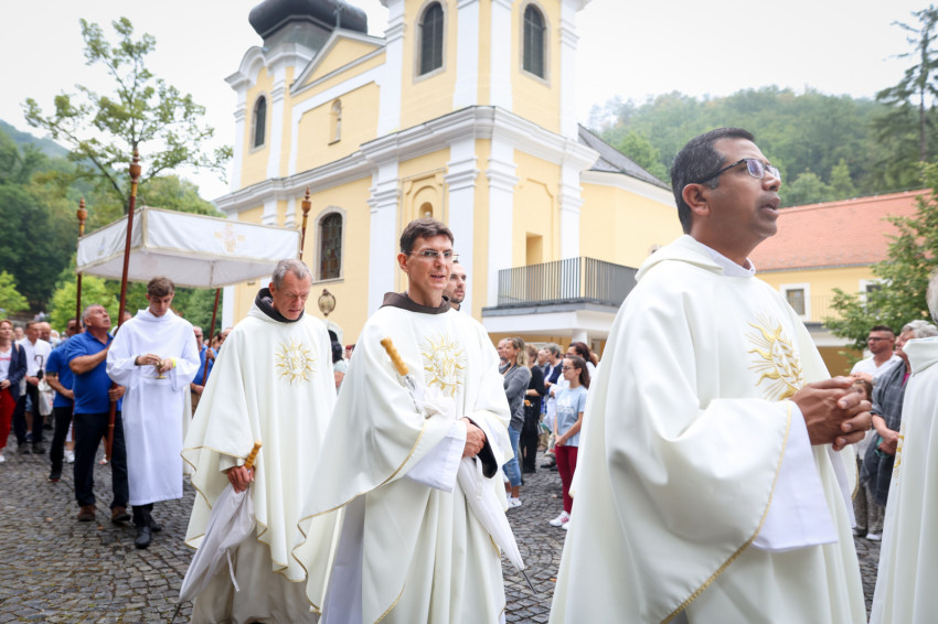 A szentmise végén Erdő Péter aranymisés áldást osztott, majd kihelyezték az Oltáriszentséget; a körmenethez felsorakoztak a népviseletbe öltözött zarándokok és a hívek. Több tucatnyi gyönyörűen felvirágozott körmeneti kereszt haladt elöl, még Bécsből való is volt, majd a Mária-szobrok következtek és az Oltáriszentség.